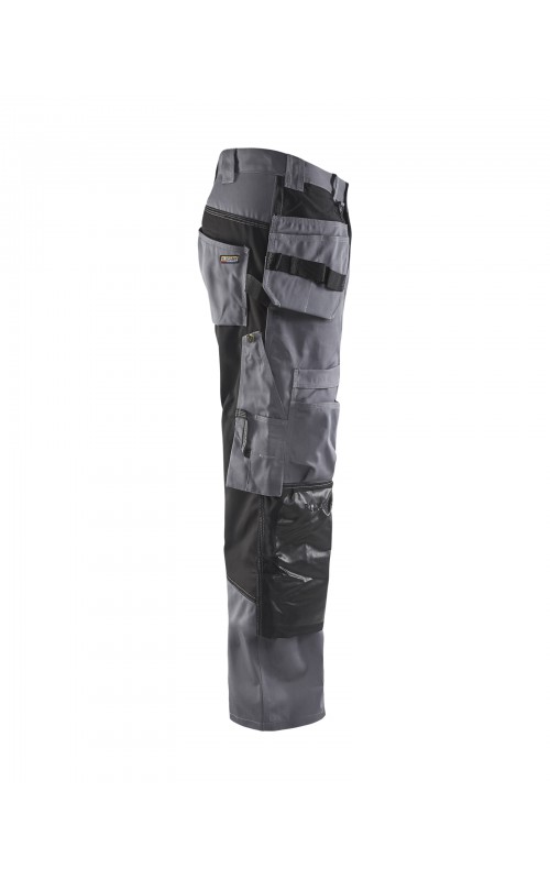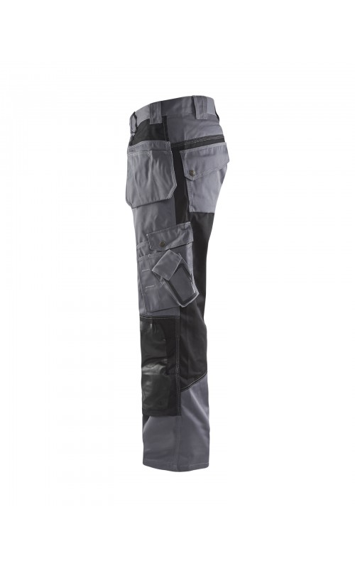 Deze comfortabele werkbroek heeft kniebeschermingszakken in CORDURA® met duurzame coating. Daarom is ze perfect voor werkzaamheden van vloerleggers en andere taken die belastend zijn voor de knieën. De broek is voorzien van een extra meszak, twee losse spijkerzakken en twee achterzakken met plooi.