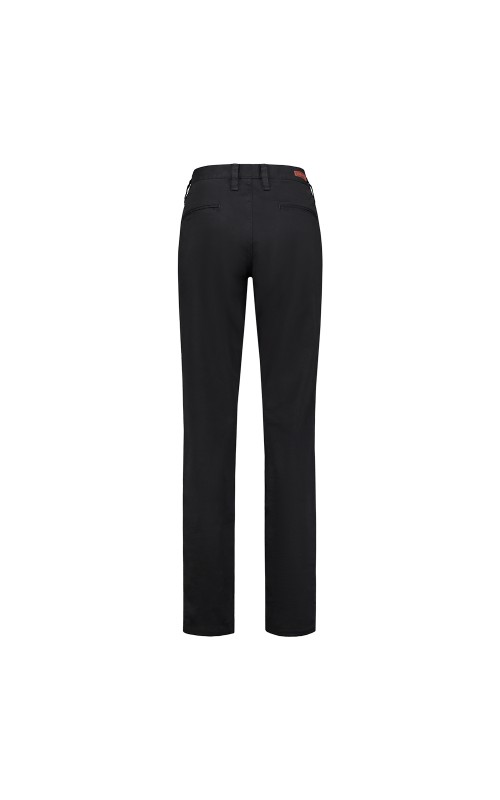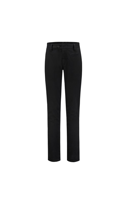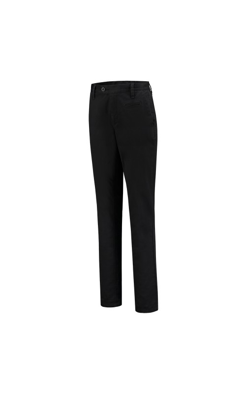 De chino van het Tricorp Casual label is vervaardigd uit 98% katoen en 2% elastaan en heeft een kwaliteit van 280 gr/m2. Het elastaan zorgt voor een mooie pasvorm. De chino is verkrijgbaar in de kleuren Black en Navy en van maat 29 t/m 44. De broek kan verlengd worden door de uitlegbare zoom.