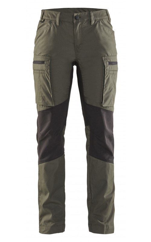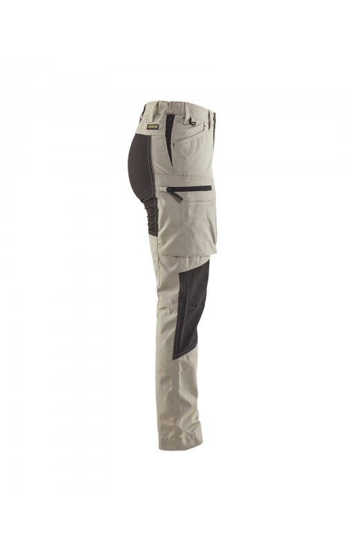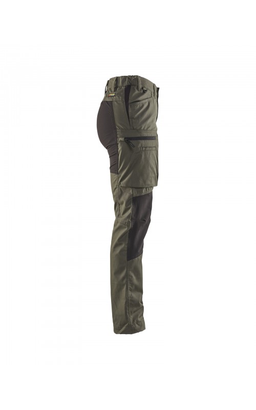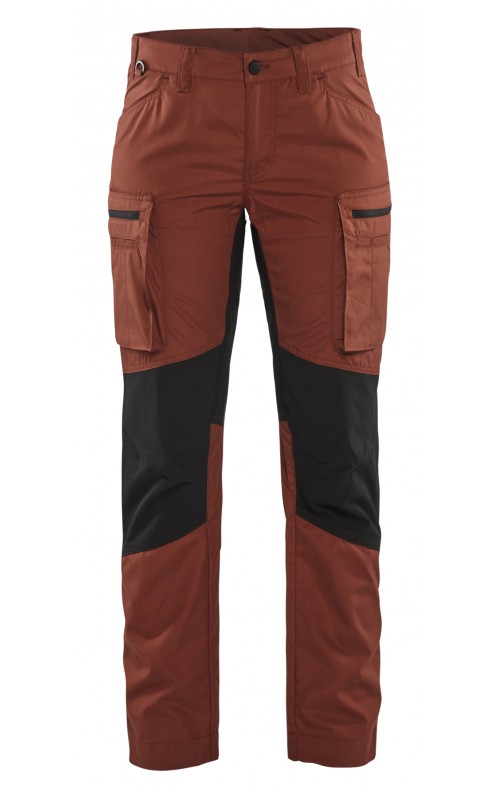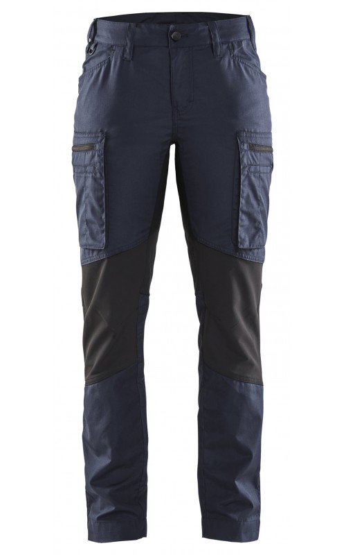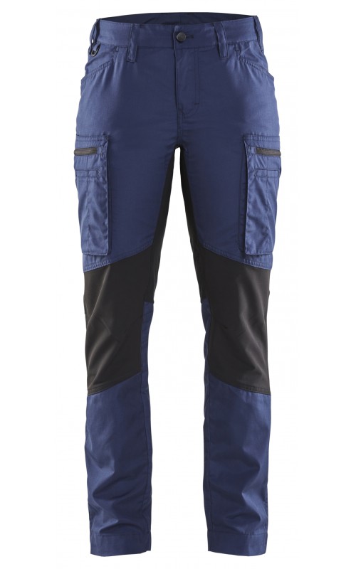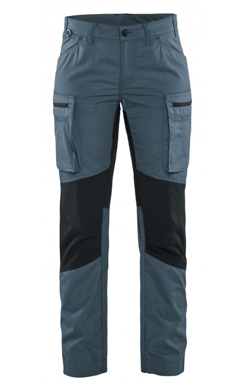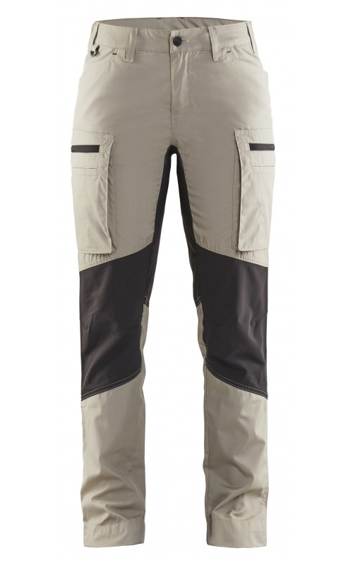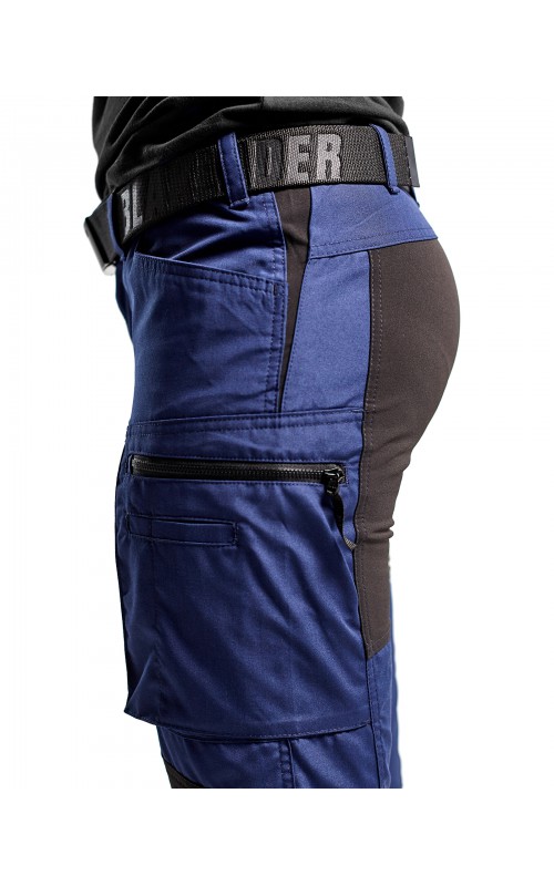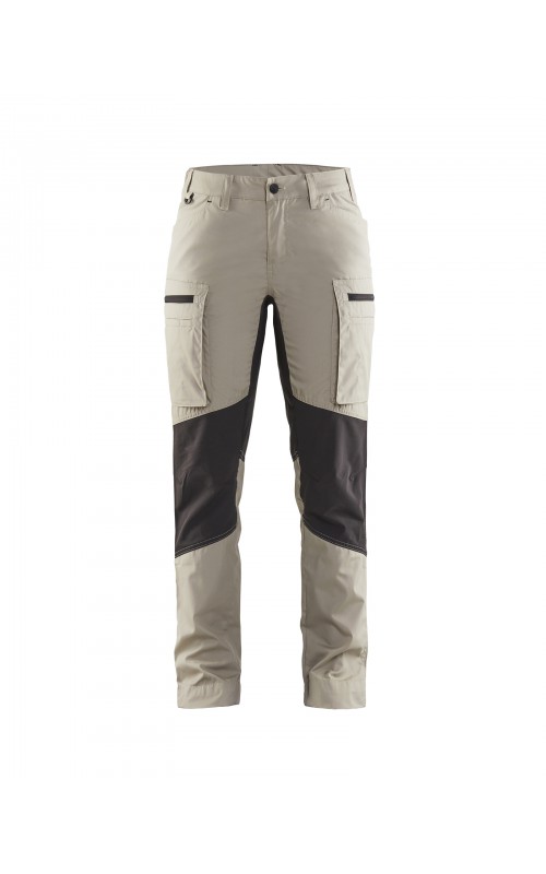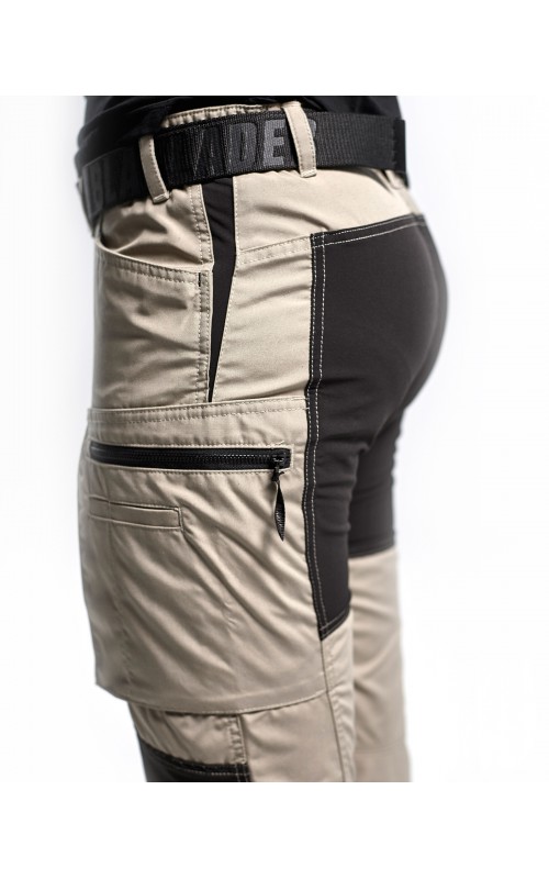 Moderne service broek in een licht, maar duurzaam materiaal met sneldrogende eigenschappen - die de broek ideaal voor werkzaamheden binnen of buiten bij hogere temperaturen maakt. Het model heeft een smallere pasvorm en voorgevormde knieën voor meer comfort. Voor optimale bewegingsvrijheid heeft de werkbroek elastische stukken op zorgvuldig geselecteerde plaatsen, zoals het zitvlak, knieën en in het kruis. De broek heeft een pen- en meszak aangepast voor rechts- en linkshandigen, een dijbeenzak met een binnenzak van gaas voor de mobiele telefoon en een 5 cm verstelbare zoom aan de onderkant van de broekspijp.