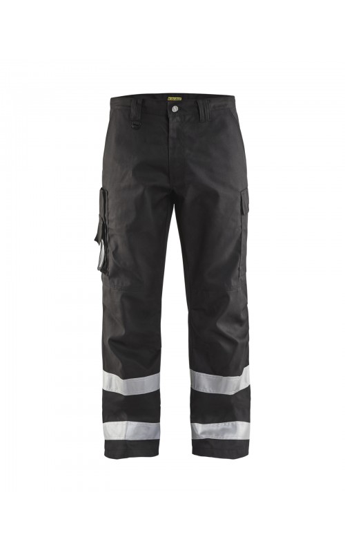 Broek met voorgevormde broekspijpen en veel opbergmogelijkheden. Voorzien van ID-kaarthouder en telefoonzak en 50 mm reflecterende tape voor verhoogde zichtbaarheid.