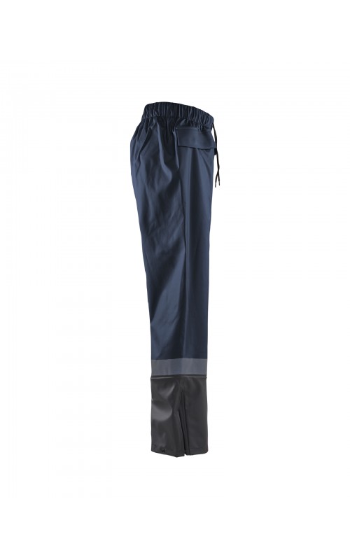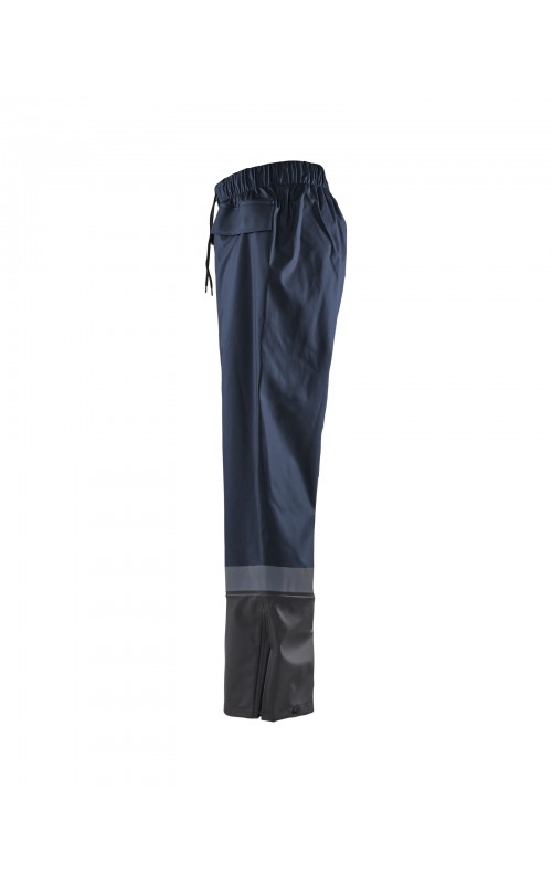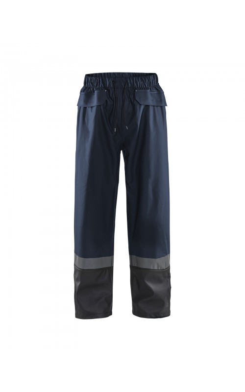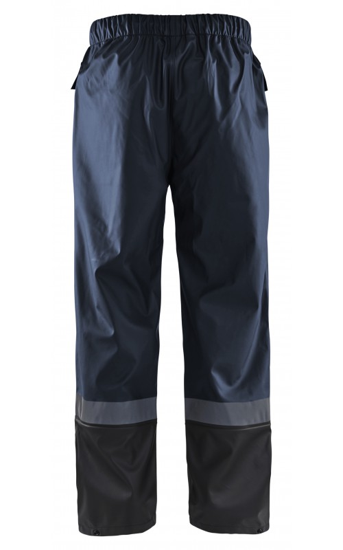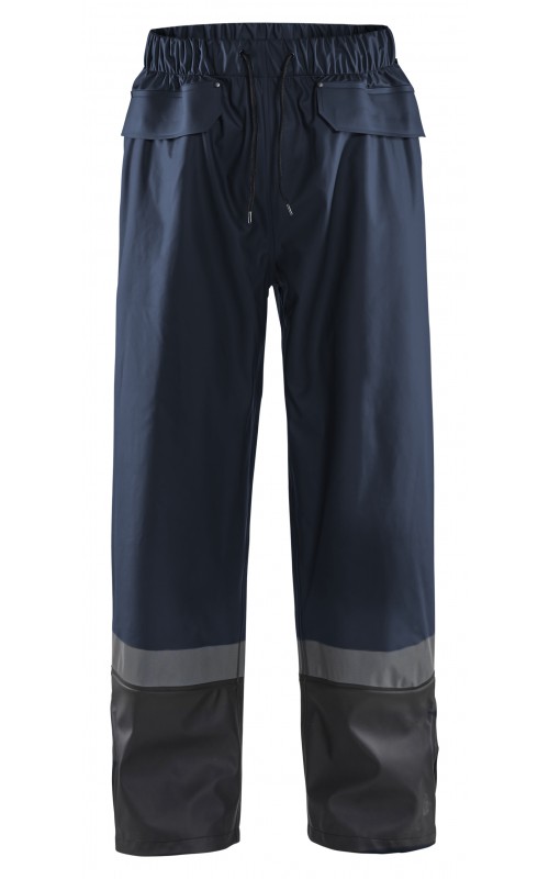 Deze heavy-duty waterdichte regenbroek is wind- en waterdicht en heeft sterke, gelaste naden. Een elastische taille met trekkoord gecombineerd met drukknopen aan de onderkant zorgen dat je snel en gemakkelijk deze overbroek aan- en uit kunt trekken over werkkleding en laarzen. Om gemakkelijke toegang tot gereedschappen te garanderen, heeft de overbroek een opening met klep zodat u de spijkerzakken erdoor kunt steken. Gecertificeerd volgens EN 343, bescherming tegen slecht weer.