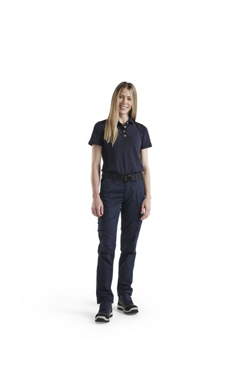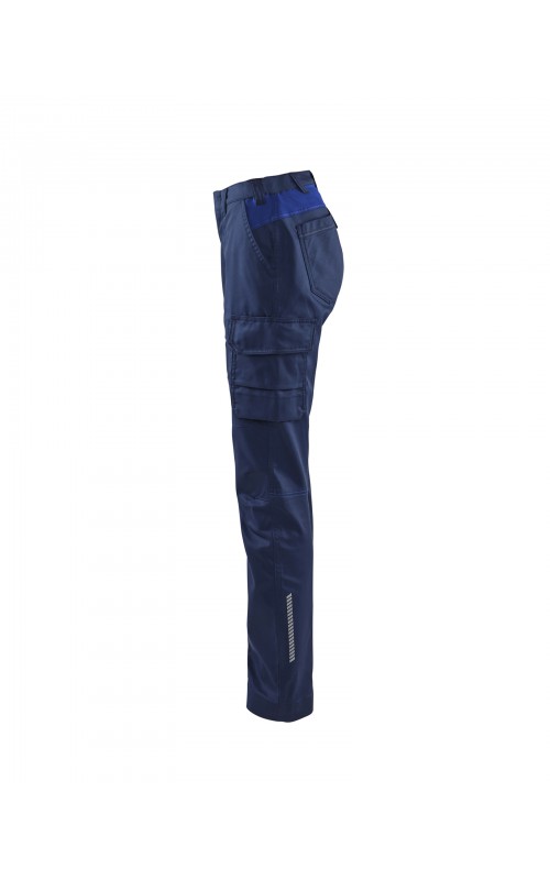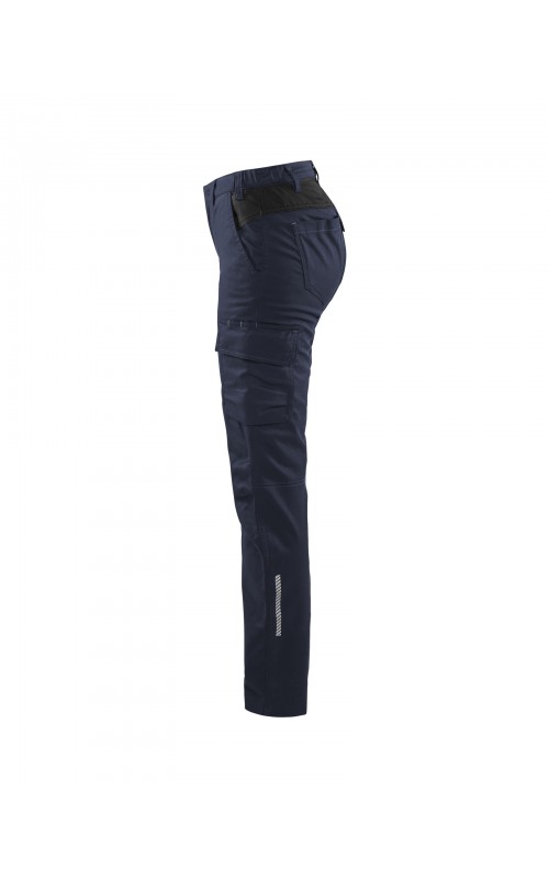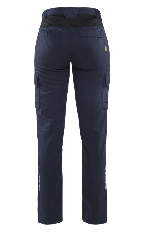 Deze damesbroek maakt deel uit van de nieuwe stretch INDUSTRIE-collectie van Blåkläder. Deze krasvrije broek is industrieel wasbaar, is volledig gemaakt van 2-way-stretch-stof en heeft een elastische tailleband voor nog meer draagcomfort. Verborgen functies zijn onder meer een binnenzak voor duimstok, een zak met ritssluiting en drukknoopsluitingen, die deze broek uiterst betrouwbaar maken. Reflecterend detail aan de broekspijpen zorgt voor extra zichtbaarheid wanneer dat nodig is.