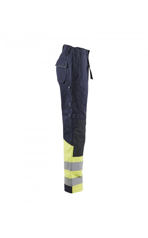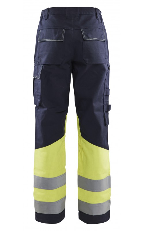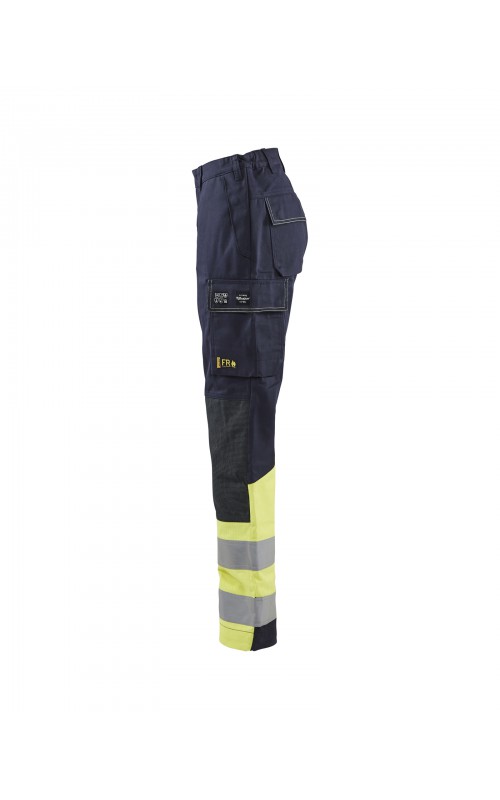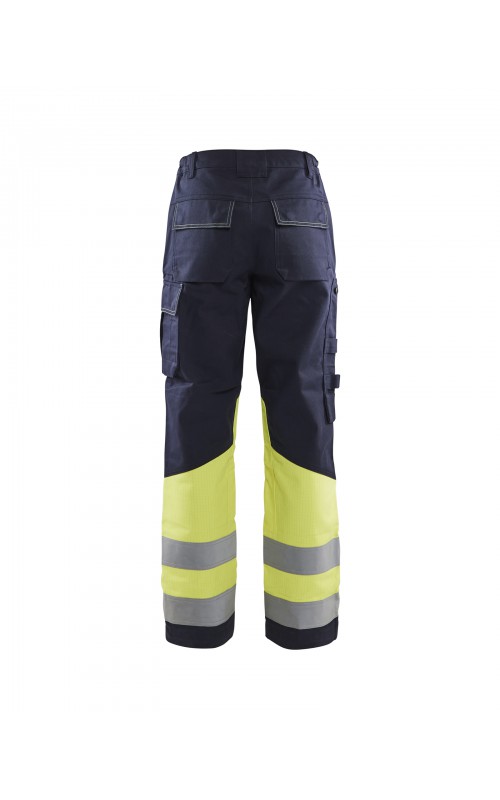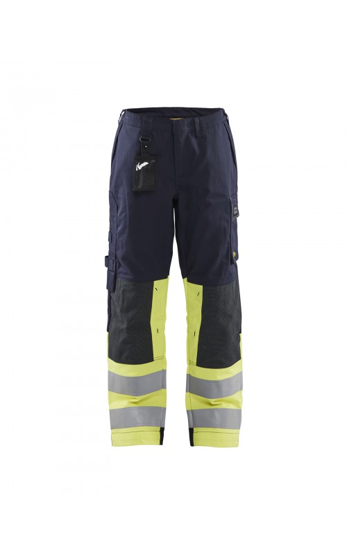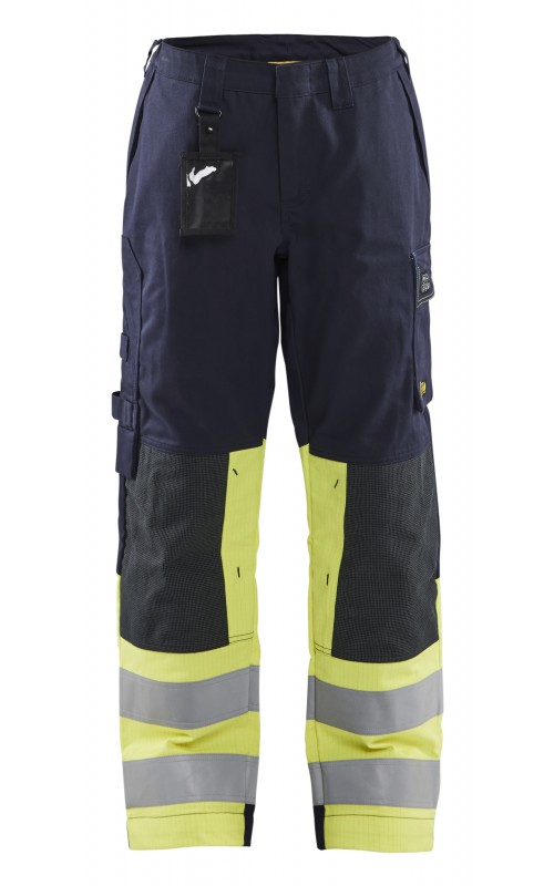Multinorm werkbroek met damespasvorm, voor maximale bescherming in zware werkomgevingen. Gemaakt van duurzaam materiaal, met goede pasvorm en extra versterking op de knie. Functionele zakken voor gereedschap en doordachte details zoals donkere kleur op delen die snel vuil worden. Versterkte kniezakken van CORDURA®/Kevlar®. Industrieel wasbaar. Beschermt tegen spatten van vloeibare chemicaliën. Gecertificeerd volgens EN ISO 20471, EN 1149-5, IEC 61482-2, EN ISO 11611, EN ISO 11612, EN 13034, ATPV: 11,0 cal/cm².