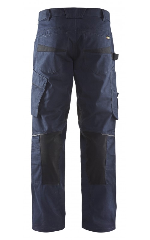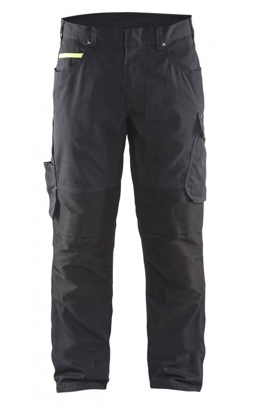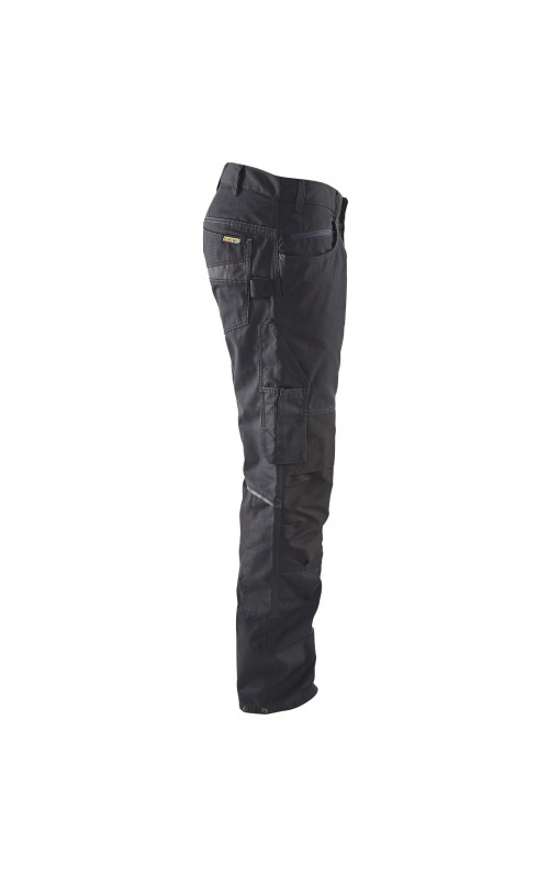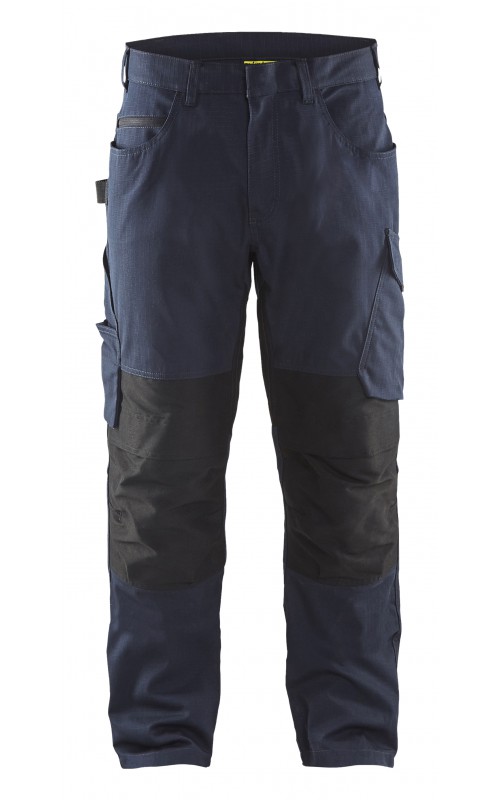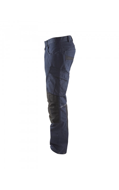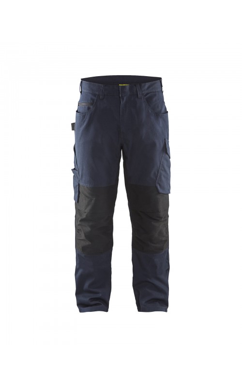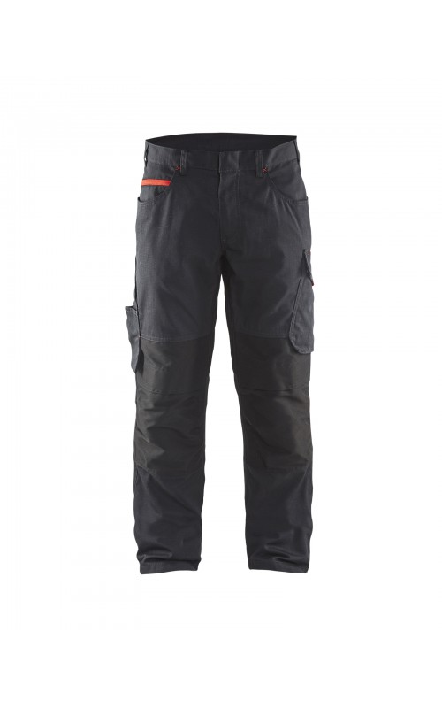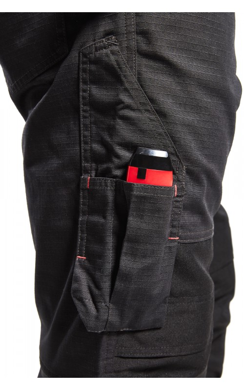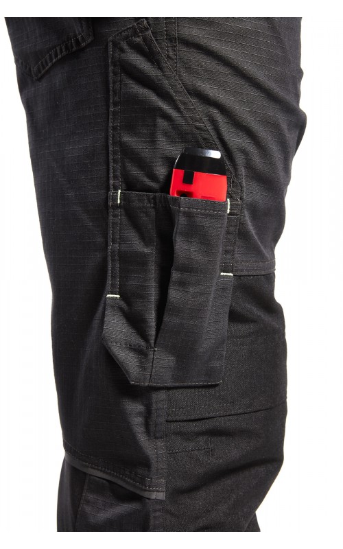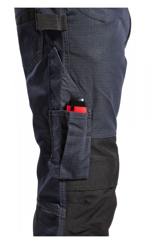 Duurzame en functionele ripstop service werkbroek. De werkbroek heeft stretch materiaal op de kuiten en aan de binnenkant van de dijen voor optimale pasvorm en comfort. Top-loading kniezakken van CORDURA®-stretch materiaal. Zorgvuldig geselecteerde details zoals discrete reflecterende details, mobiele telefoonzak van mesh, duimstokzak en praktische messenzak maken deze werkbroek geschikt voor ambachtslieden. Niet aanbevolen voor werkzaamheden in de zwaardere bouw.