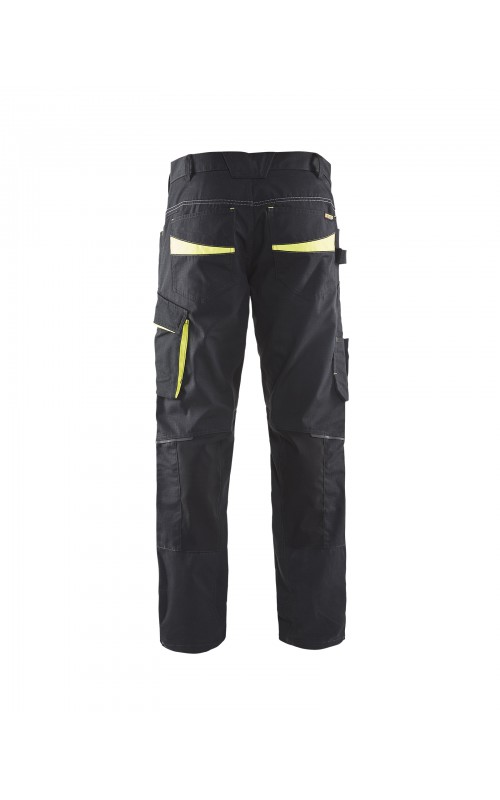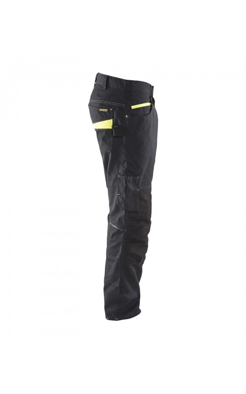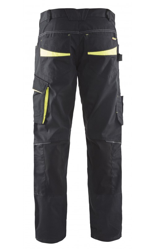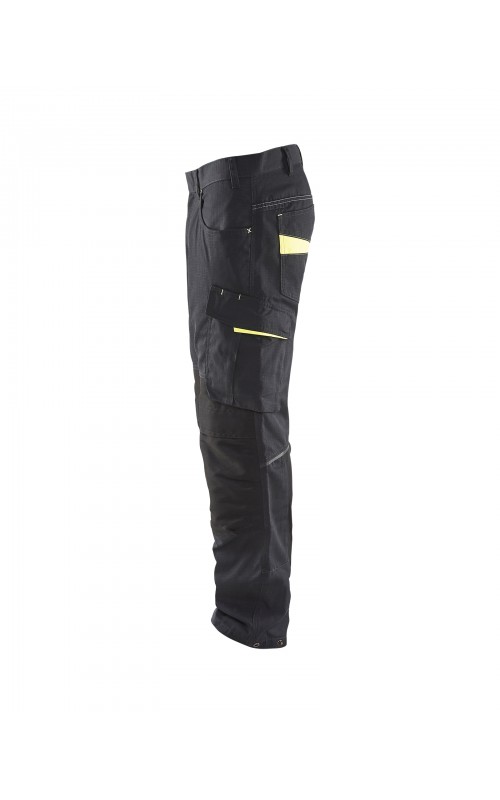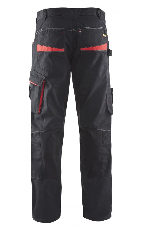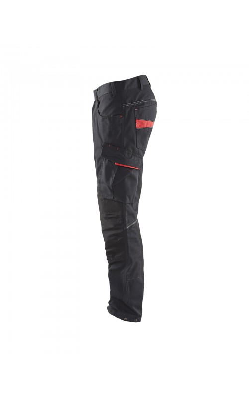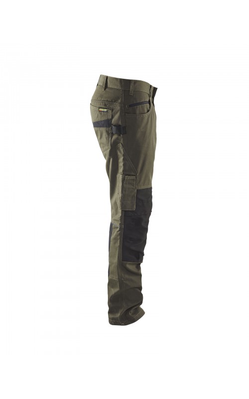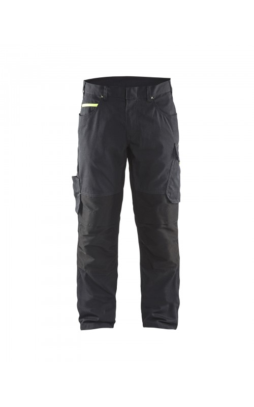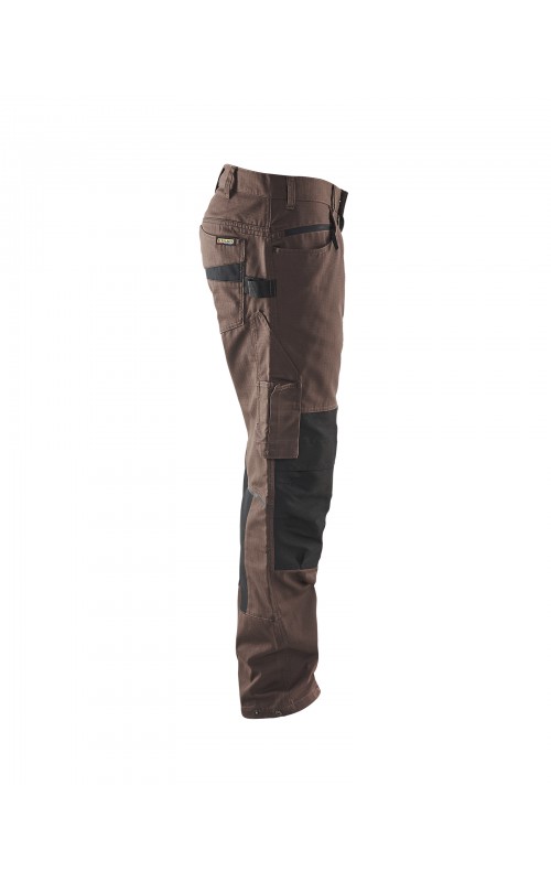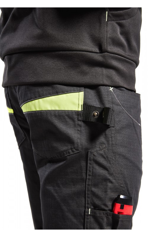 Duurzame en functionele ripstop service werkbroek. De werkbroek heeft stretch materiaal op de kuiten en aan de binnenkant van de dijen voor optimale pasvorm en comfort. Top-loading kniezakken van CORDURA®-stretch materiaal. Zorgvuldig geselecteerde details zoals discrete reflecterende details, mobiele telefoonzak van mesh, duimstokzak en praktische messenzak maken deze werkbroek geschikt voor ambachtslieden. Niet aanbevolen voor werkzaamheden in de zwaardere bouw.