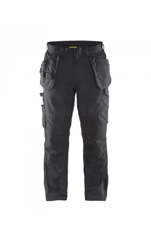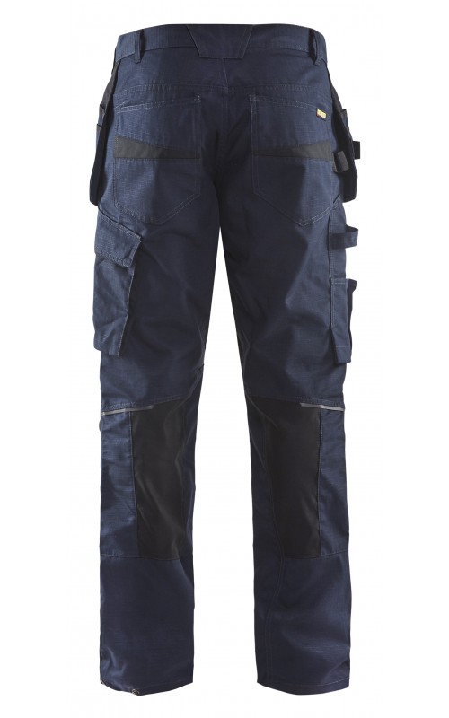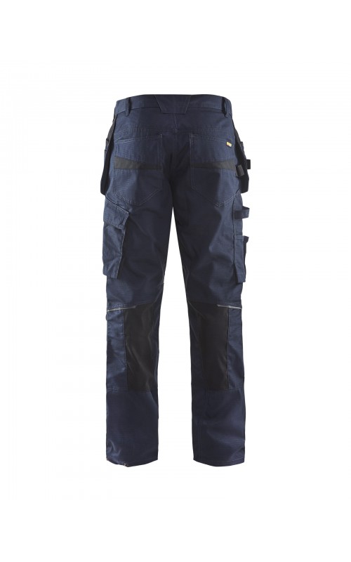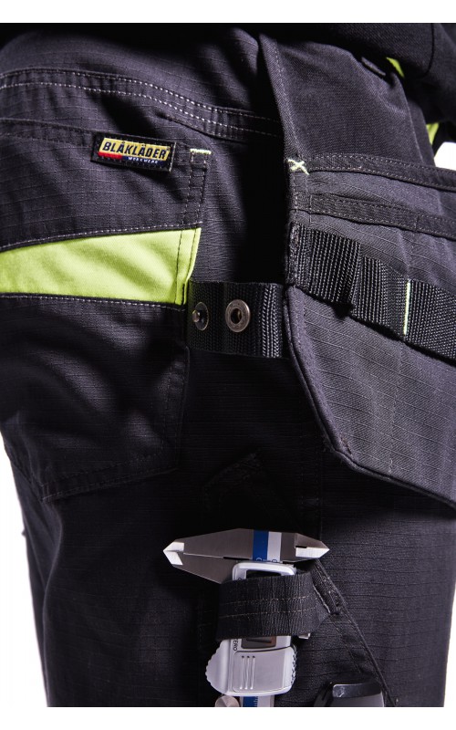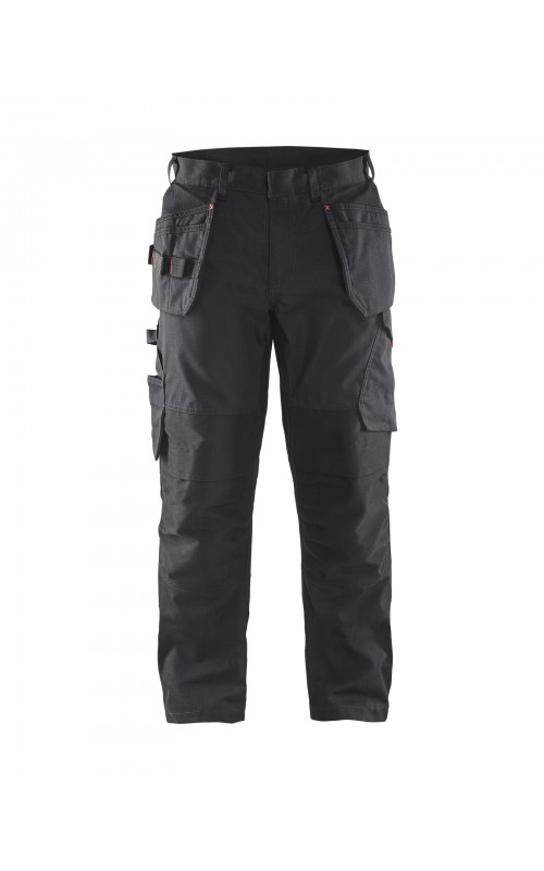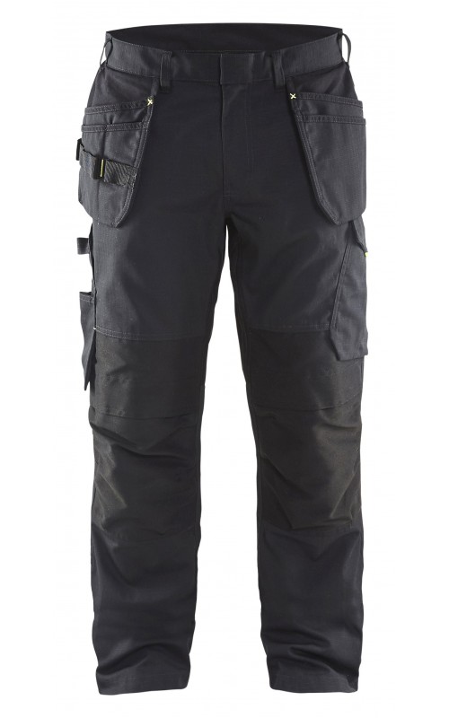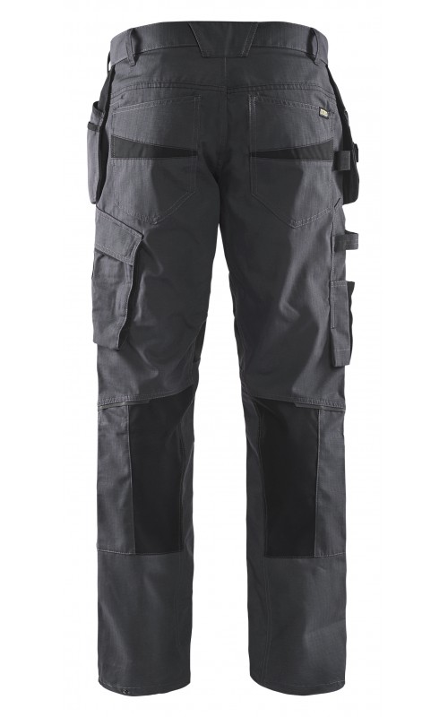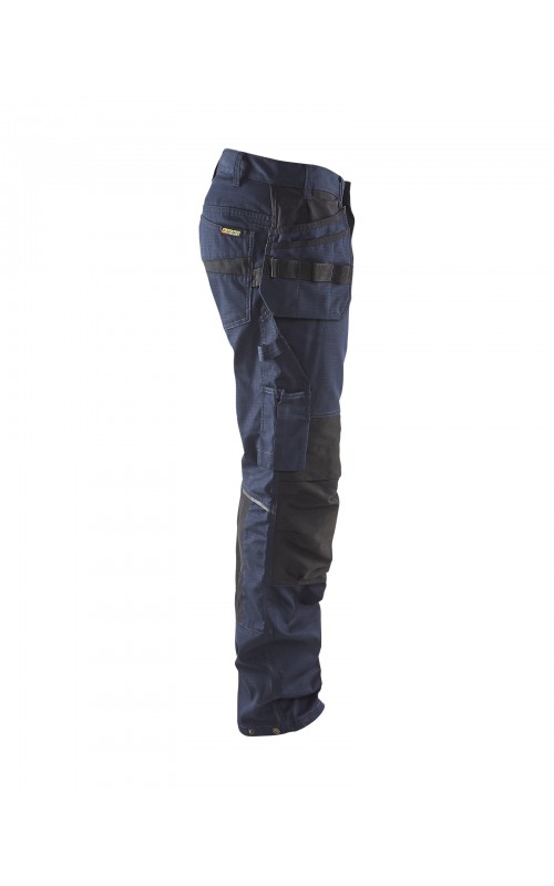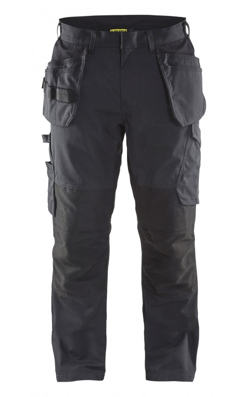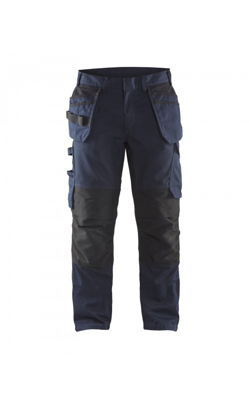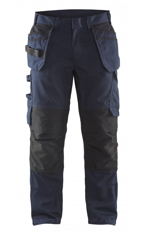 Functionele ripstop service werkbroek met CORDURA®-versterkte spijkerzakken. De werkbroek heeft stretch materiaal op de kuiten en aan de binnenkant van de dijen voor optimale pasvorm en comfort. Toploading kniezakken van CORDURA®-stretch materiaal. Zorgvuldig geselecteerde details zoals discrete reflecterende details, mobiele telefoonzak van mesh, duimstokzak met houder voor digitale schuifmaat en praktische messenzak maken deze werkbroek geschikt voor ambachtslieden. Niet aanbevolen voor werkzaamheden in de zwaardere bouw.