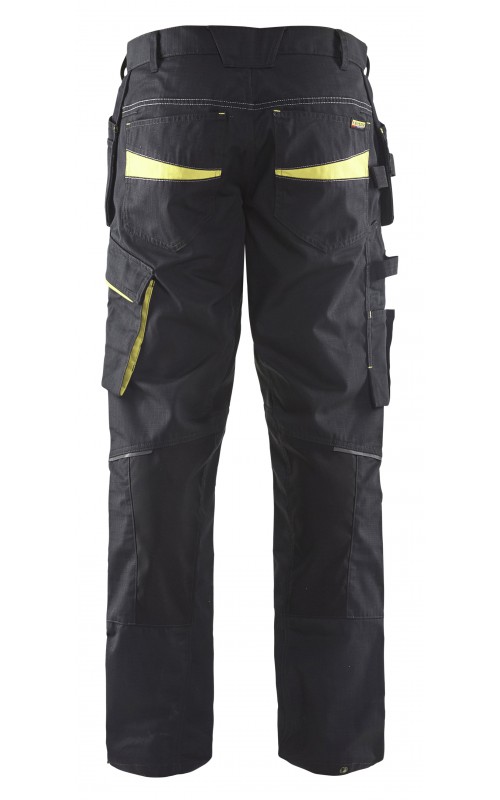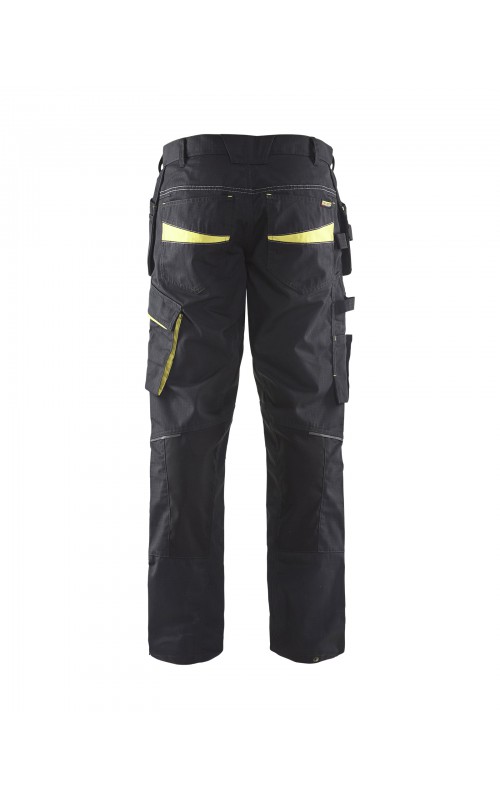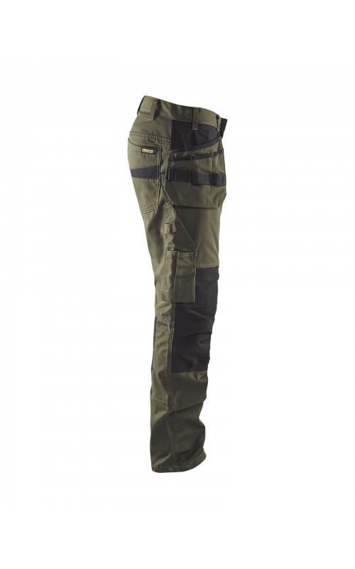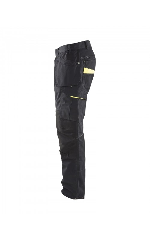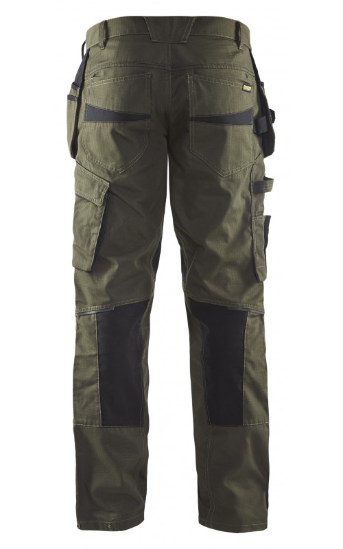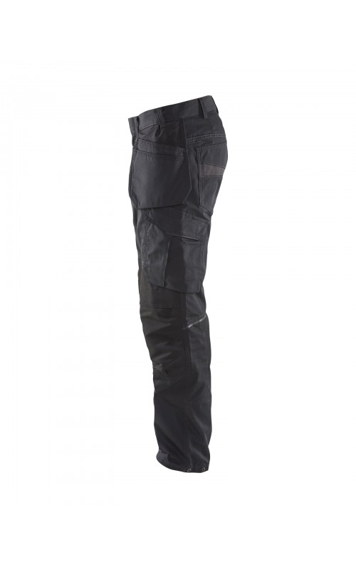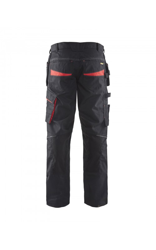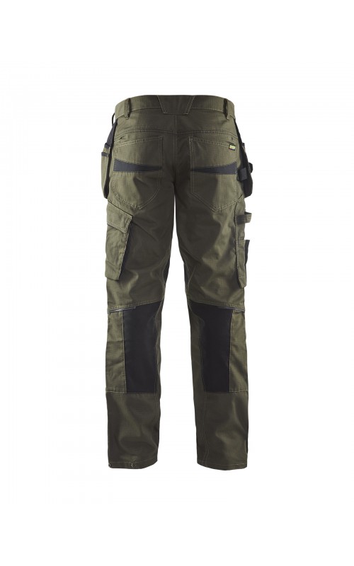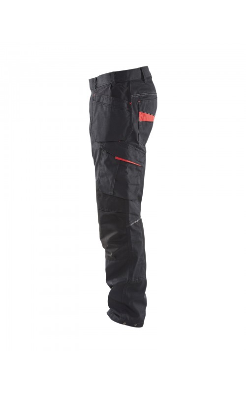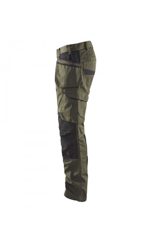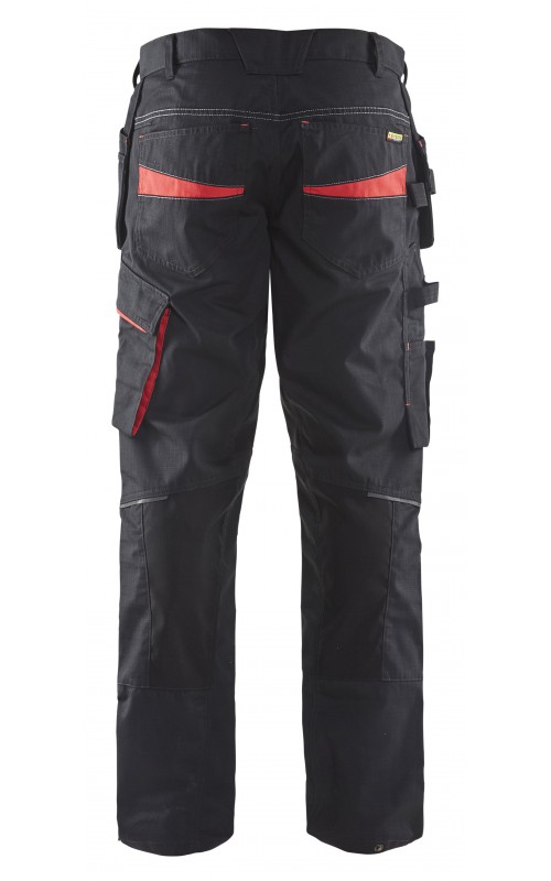 Functionele ripstop service werkbroek met CORDURA®-versterkte spijkerzakken. De werkbroek heeft stretch materiaal op de kuiten en aan de binnenkant van de dijen voor optimale pasvorm en comfort. Toploading kniezakken van CORDURA®-stretch materiaal. Zorgvuldig geselecteerde details zoals discrete reflecterende details, mobiele telefoonzak van mesh, duimstokzak met houder voor digitale schuifmaat en praktische messenzak maken deze werkbroek geschikt voor ambachtslieden. Niet aanbevolen voor werkzaamheden in de zwaardere bouw.