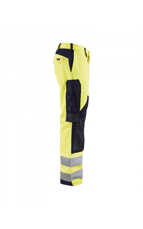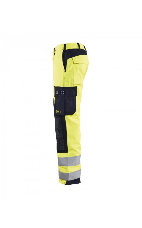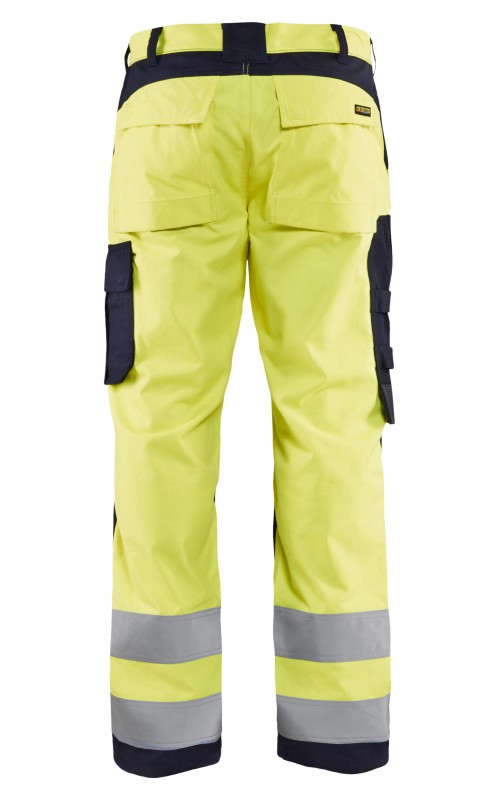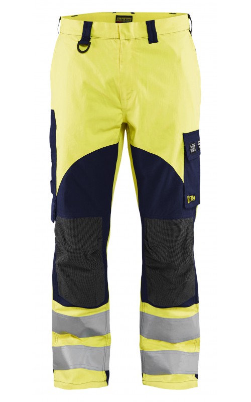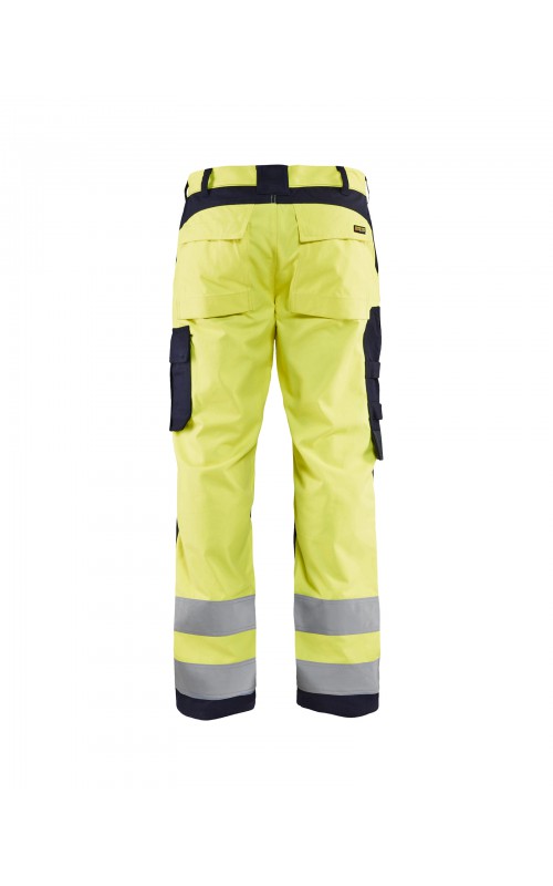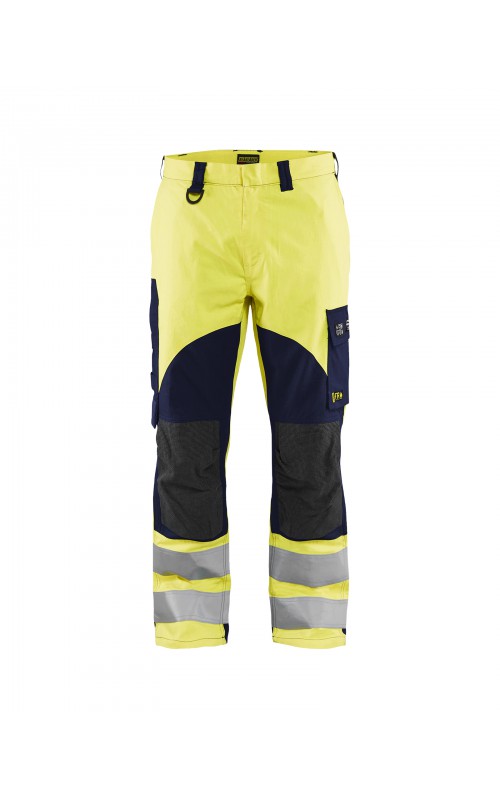 Broek met uitstekende kracht/gewichtsverhouding. Het weefsel is inherent vlamvertragend, wat betekent dat de vlamvertragende eigenschappen van nature aanwezig zijn in de vezels. De broek heeft stevige CORDURA®/Kevlar®/Protal® versterkte delen op de knieën. Ze zijn voorzien van veel functionele opbergmogelijkheden die zijn ontworpen om aan certificeringsnormen te voldoen. Zakken die onderhevig zijn aan overmatige slijtage zijn versterkt met dubbele stof om de levensduur te verlengen. De broek heeft spijkerzakken, een open duimstokzak en achterzakken zonder klep. Ripstop-stof biedt uitstekende scheurweerstand. Het product is gecertificeerd volgens: EN 1149-5, EN ISO 13034 PB [6], EN ISO 20471 Klasse 2, EN ISO 11611 Klasse 1 A1 + A2, EN ISO 11612 A1, A2, B1, C1, E1, F1, IEC 61482-2 Klasse 1, ATPV: 11,9 cal / cm², HAF: 79,3%, LOI: 29,6%. Behaalt klasse 3-certificering in combinatie met jack 4089 volgens de EN ISO 20471-norm. Getest om te voldoen aan de EN ISO 15797-eisen voor industrieel wassen. Binnenkort beschikbaar in damesmodel 7189.
