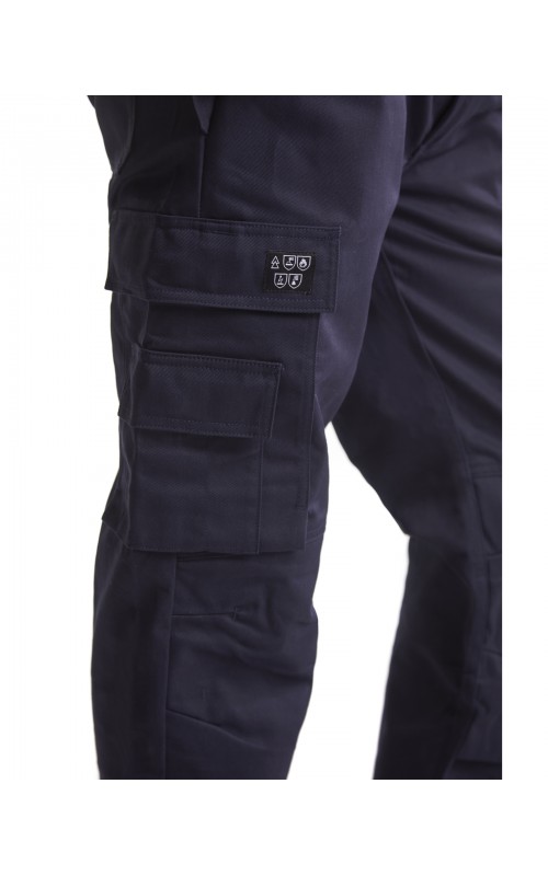 Vlamvertragende werkbroek met verstelbare tailleband voor betere pasvorm. Het kledingstuk is duurzaam en heeft praktische zakken met klep om de werkzaamheden eenvoudig te kunnen uitvoeren. Industrieel wasbaar. Gecertificeerd volgens EN 1149-5, IEC 61482-2 Klasse 1. EN ISO 11611 Klasse 1 A1. EN ISO 11612 A1, B1, C1, E1, F1. EN ISO 13034 PB [6]. ATPV: 16,0 cal/cm², HAF: 82,0%.
