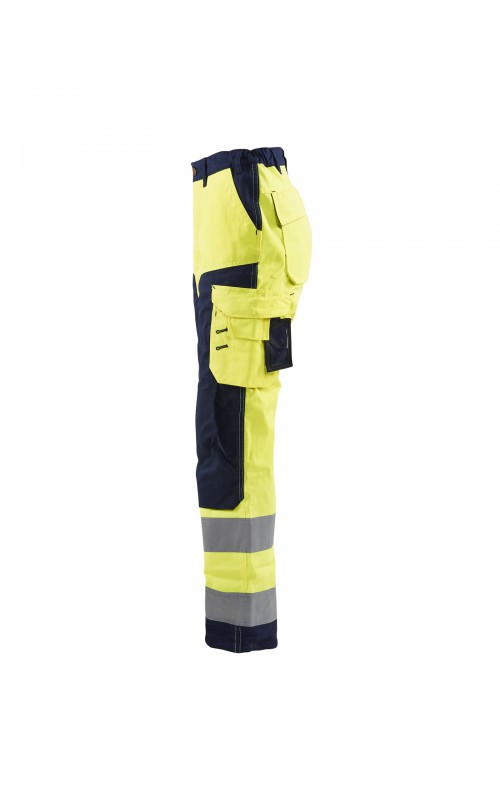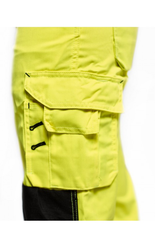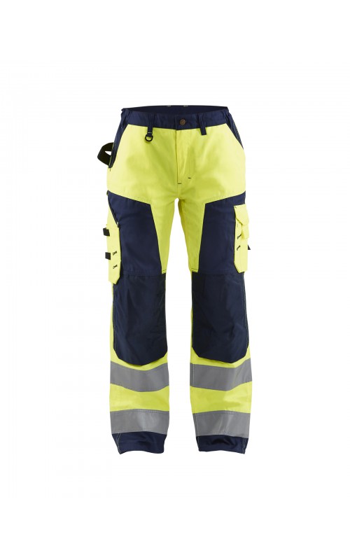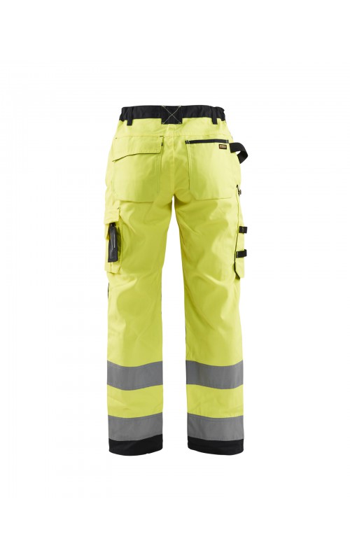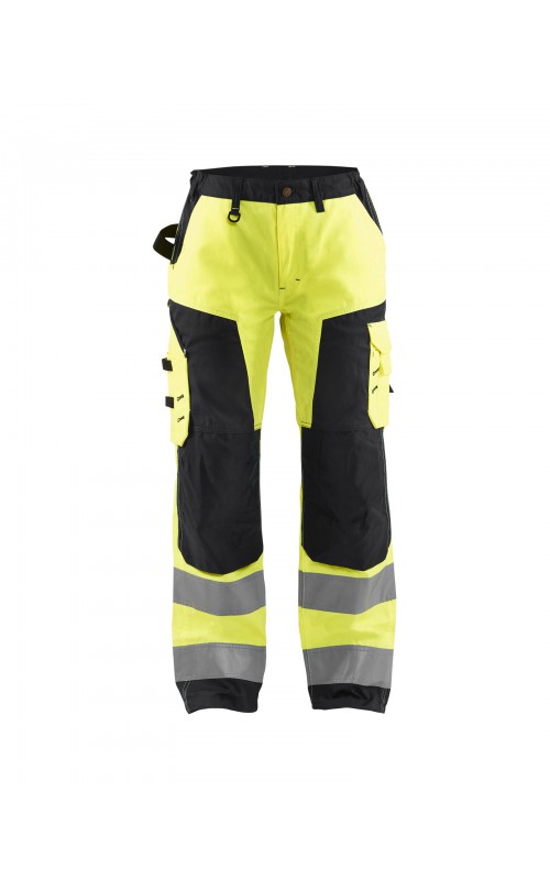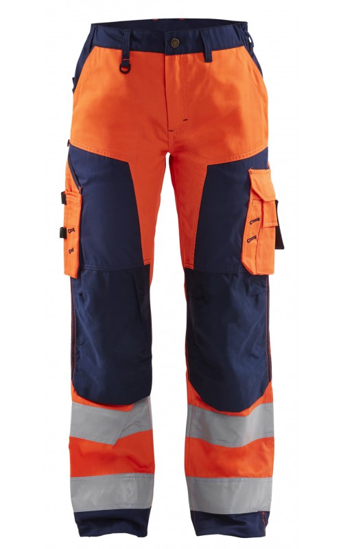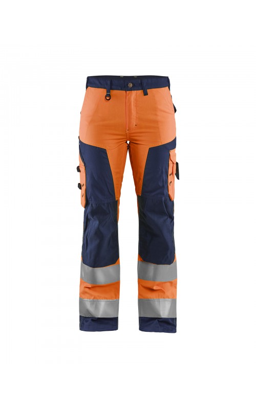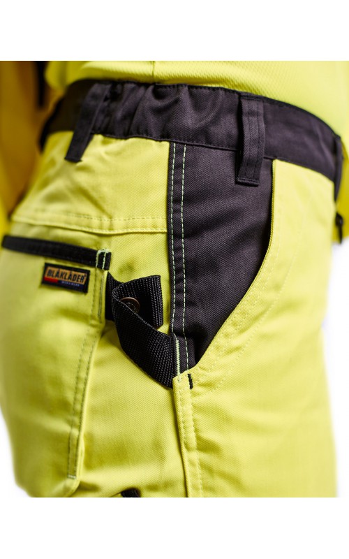 Dames High Vis werkbroek zonder spijkerzakken met een goed zichtbaar ontwerp die slijtvast, waterafstotend en koel zijn. Hoog comfortniveau, geweldige functionaliteit en CORDURA®-verstevigingen op de knieën. De broek heeft een elastische taille voor een comfortabele pasvorm en is voorzien van trekkoord in de broekspijpen. Gecertificeerd volgens EN ISO 20471, klasse 2.