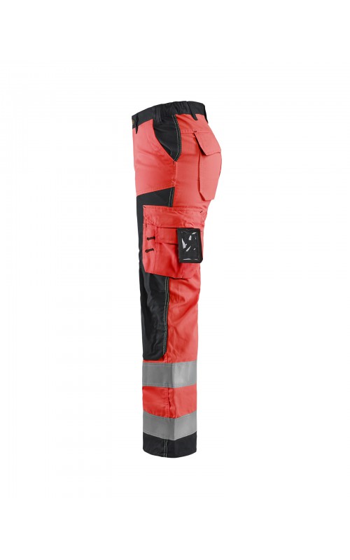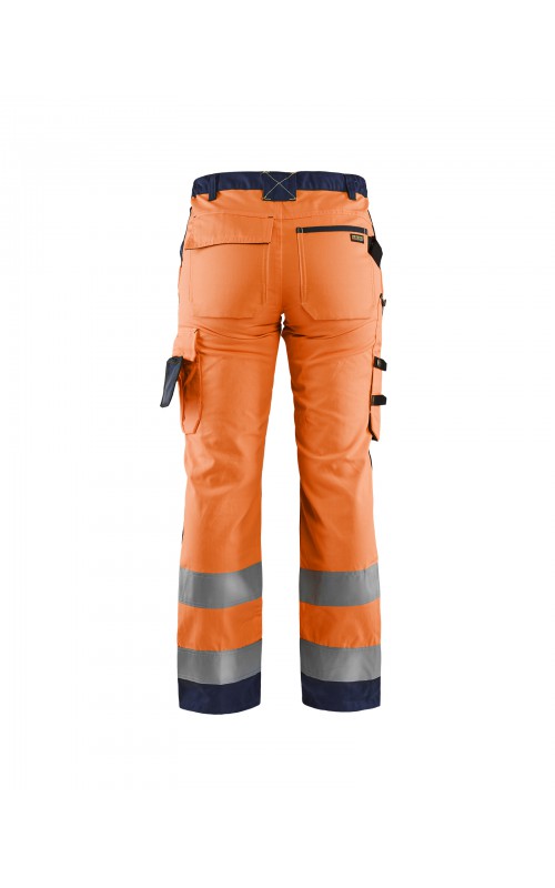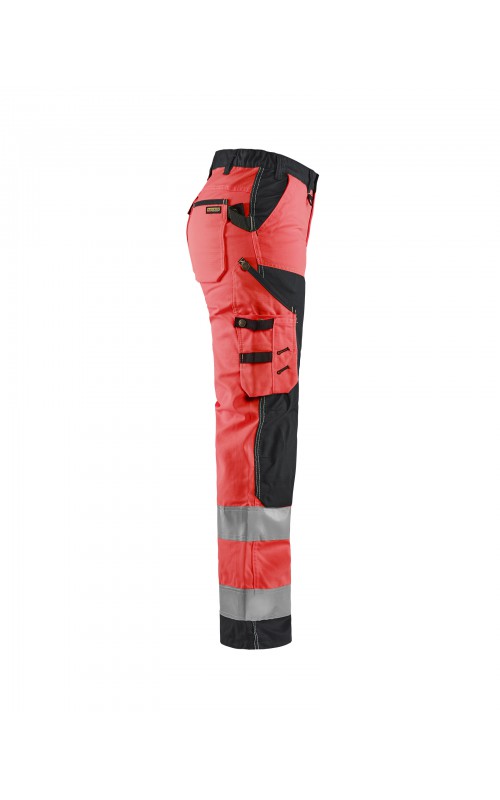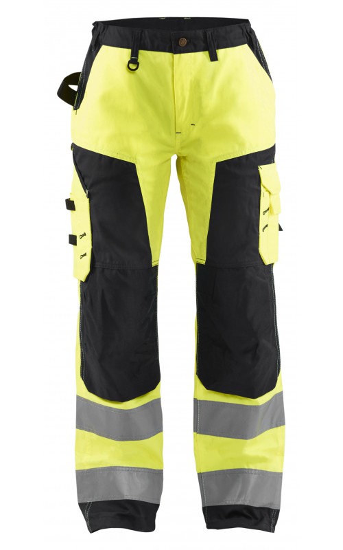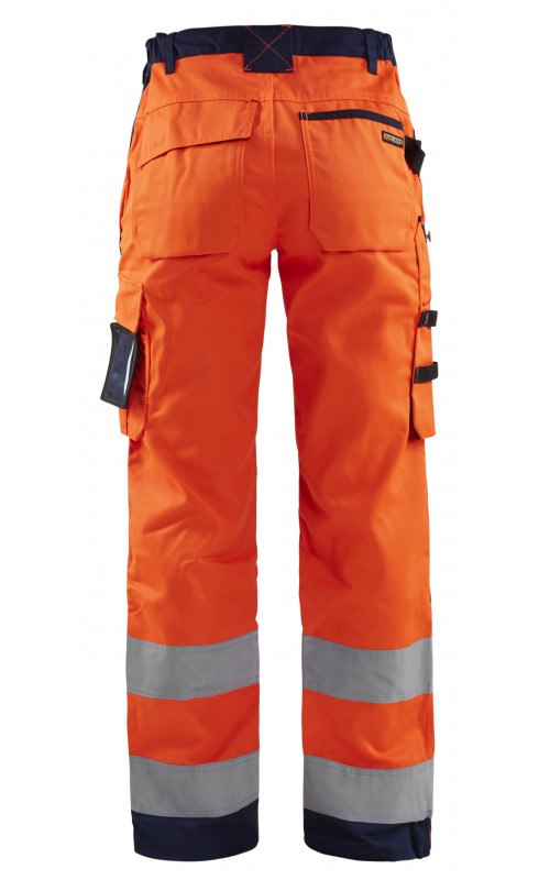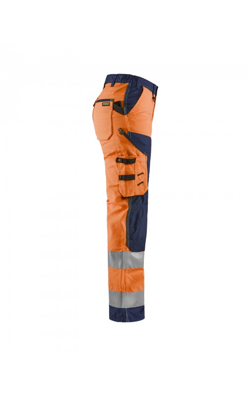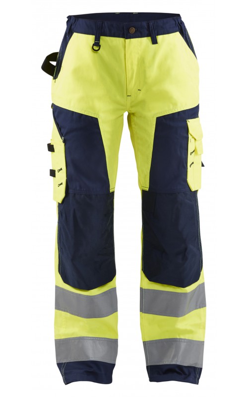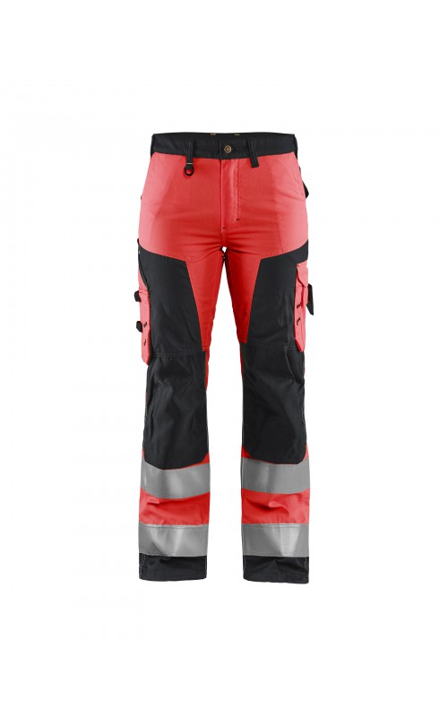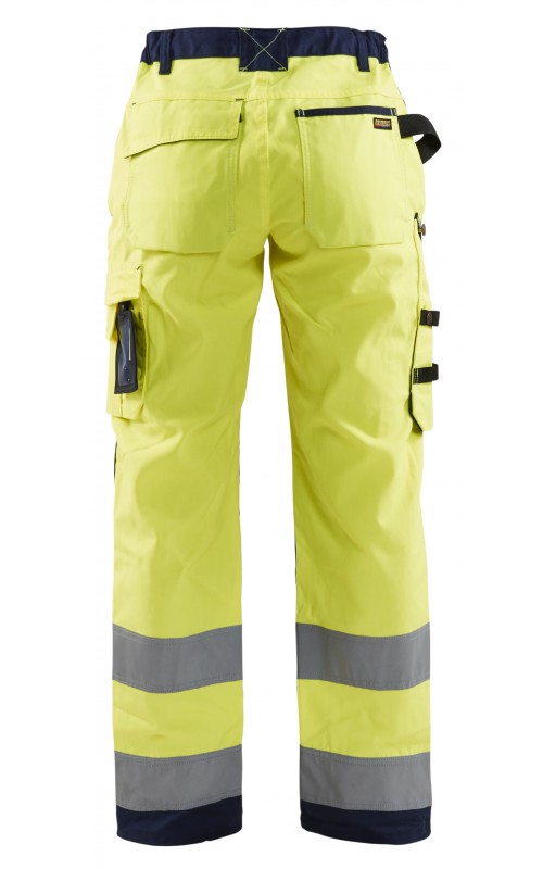 Dames High Vis werkbroek zonder spijkerzakken met een goed zichtbaar ontwerp die slijtvast, waterafstotend en koel zijn. Hoog comfortniveau, geweldige functionaliteit en CORDURA®-verstevigingen op de knieën. De broek heeft een elastische taille voor een comfortabele pasvorm en is voorzien van trekkoord in de broekspijpen. Gecertificeerd volgens EN ISO 20471, klasse 2.
