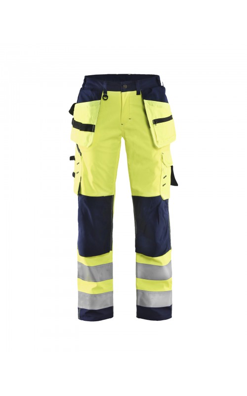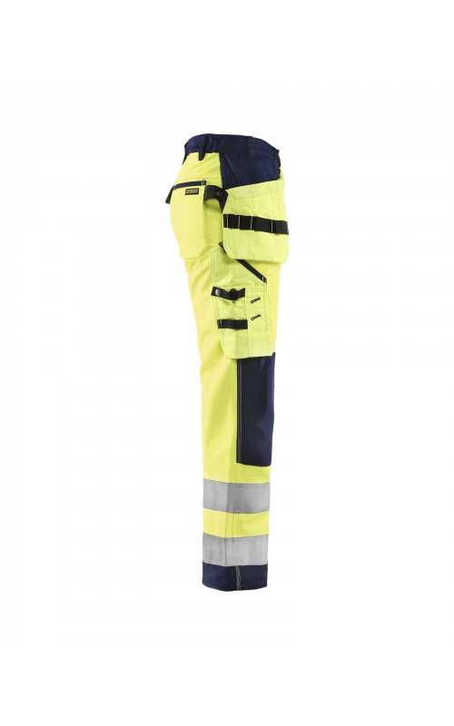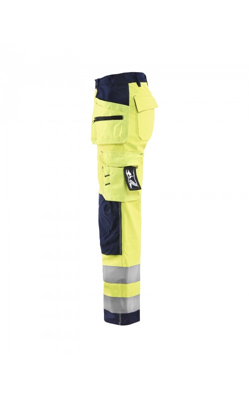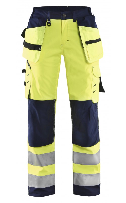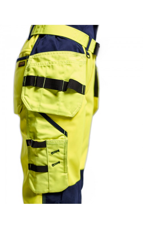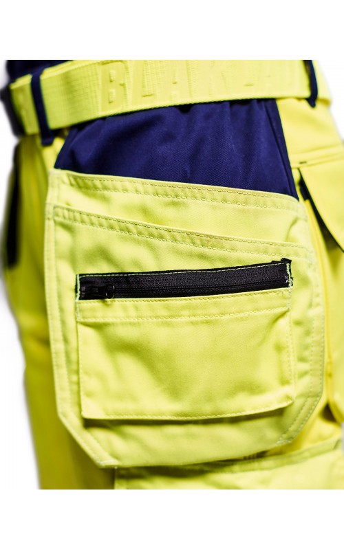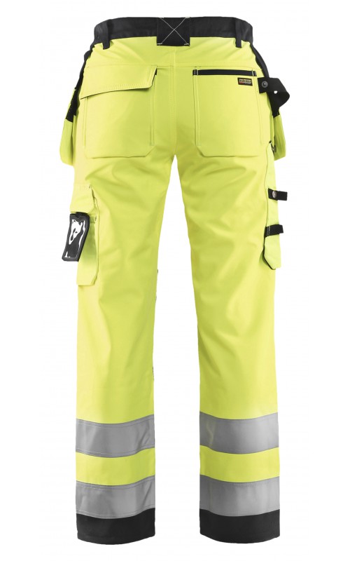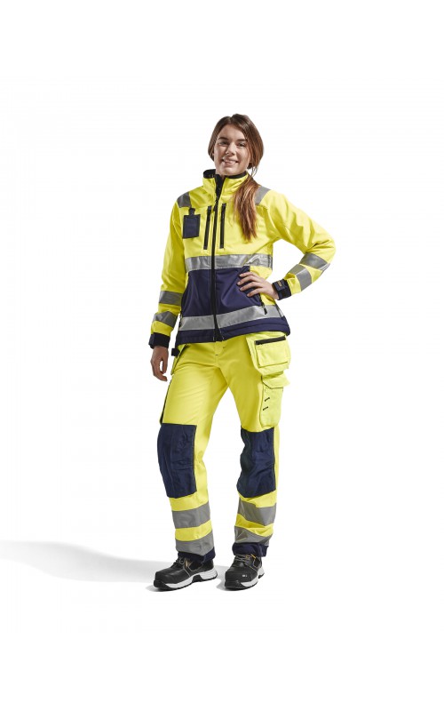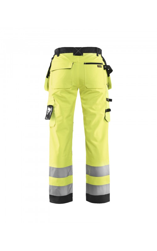 Een rekbare softshell werkbroek van ademend wind- en waterdicht materiaal. De werkbroek heeft een elastische functie in de taille en koord in broekspijpen voor optimale pasvorm. De multi-functionele zakken van de werkbroek en het uiterst flexibele materiaal maakt deze broek een voor de hand liggende keuze in zware weersomstandigheden. Gecertificeerd volgens EN ISO 20471, Klasse 2, veiligheidskleding met hoge zichtbaarheid.