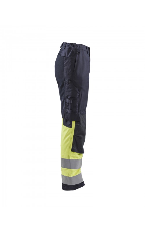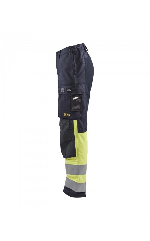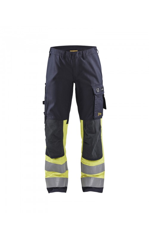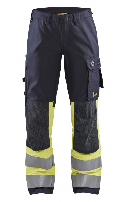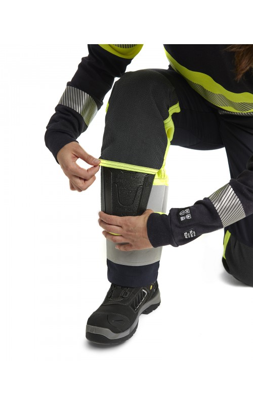 Ideale werkbroek met damespasvorm en hoog comfort voor wie in extreme omgevingen werkt. Uitgerust met stretchpanelen voor meer mobiliteit en flexibiliteit. De stof is inherent met een hoge slijtvastheid. CORDURA®/Kevlar®/Protal®-versterking op knie-, duimstok- mes- en beenzak met ruimte voor telefoon. Bijzonder geschikt voor bijvoorbeeld elektriciens en vergelijkbare beroepscategorieën. Gecertificeerd volgens EN ISO 20471 klasse 1; EN 1149-5; EN ISO 11612 A1, B1, C1, F1 en IEC 61482-2 APC 1. Arc-klasse: 10,7 cal/cm² (van toepassing op het stretchmateriaal). EN 14404: 2004 + A1: 2010 samen met kniebeschermers 4027 en 4057.
