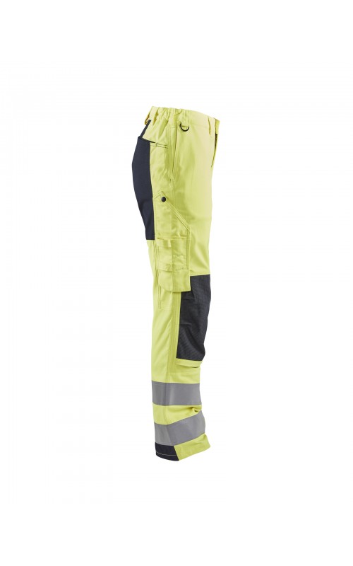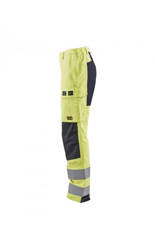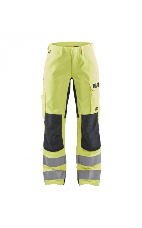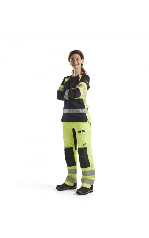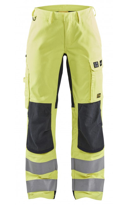 Vlamvertragende werkbroek met damespasvorm die voldoet aan alle eisen voor een duurzaam werkkledingstuk, aangepast voor onderhoudswerkzaamheden die hoge eisen aan veiligheid en bescherming stellen. Uitgerust met stretchpanelen voor meer mobiliteit en flexibiliteit en heeft praktische, externe kniebeschermingszakken met CORDURA®/Kevlar®/Protal®-versterking. Gecertificeerd volgens EN ISO 20471 klasse 2; EN 1149-5; EN ISO 11612 A1, B1, C1, F1 en IEC 61482-2 APC 1. Arc-klasse: 10,7 cal/cm² (van toepassing op het stretchmateriaal). EN 14404: 2004 + A1: 2010 samen met kniebeschermers 4027 en 4057.