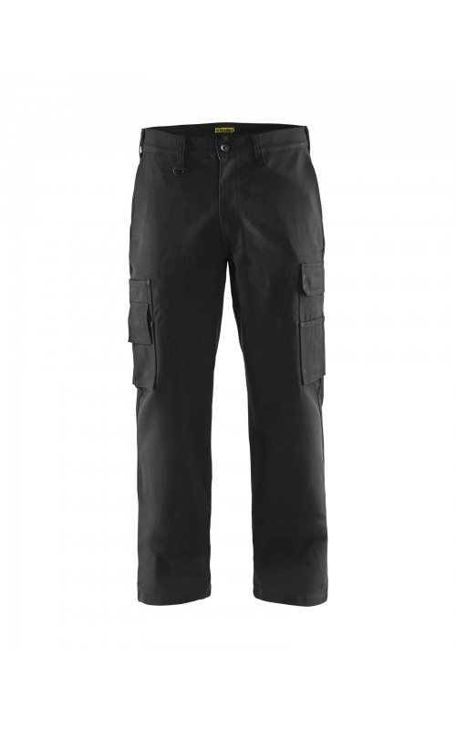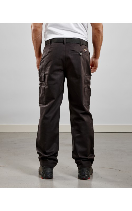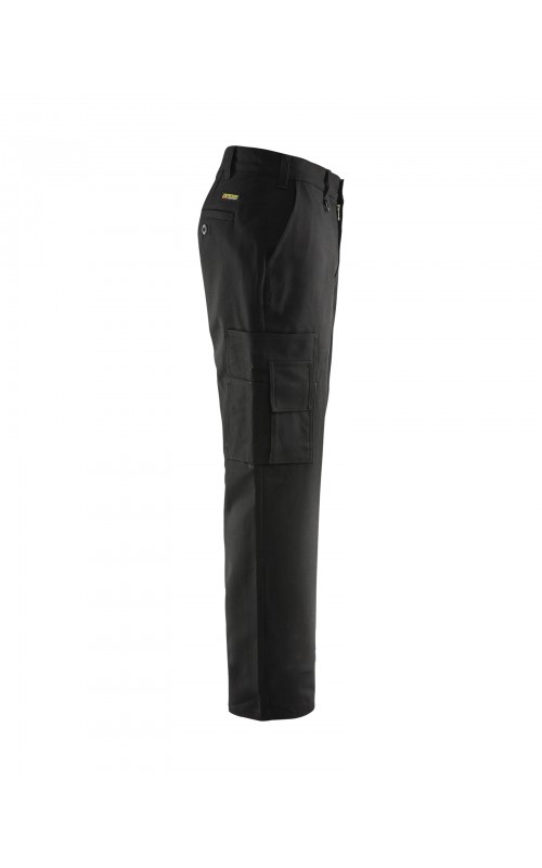 Versatile trousers with slanting pockets, a buttoned back pocket and leg pockets, one with a flap and three-slot pen pocket. Soft yet durable service trousers.