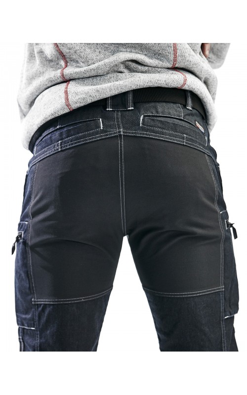 Service werkbroek met stretchdelen en voorgevormde knieën voor uitstekende bewegingsvrijheid en draagcomfort. Gemaakt van CORDURA® Denim, dat vier keer sterker is dan gewone Denim wat de broek extreem duurzaam maakt. * Note: door de Denim coating raden wij het plaatsen van transfers op de kwaliteiten 1140, 1141, 1142 en 1147 af.