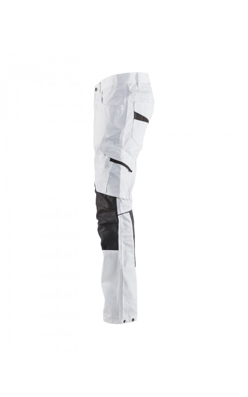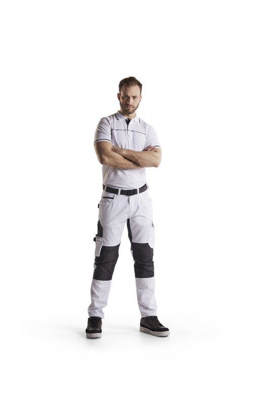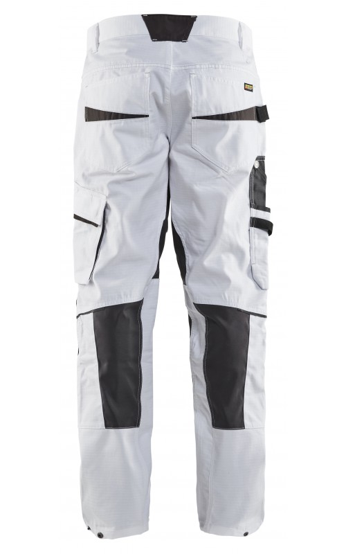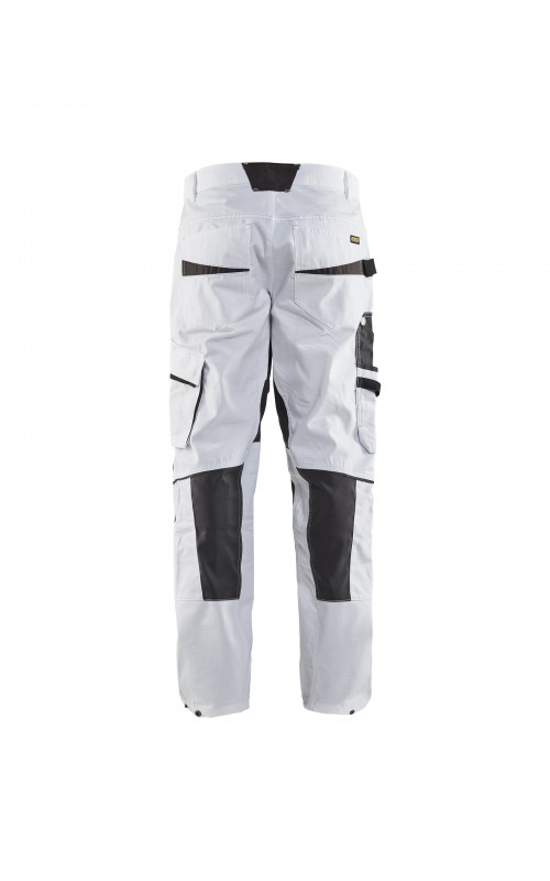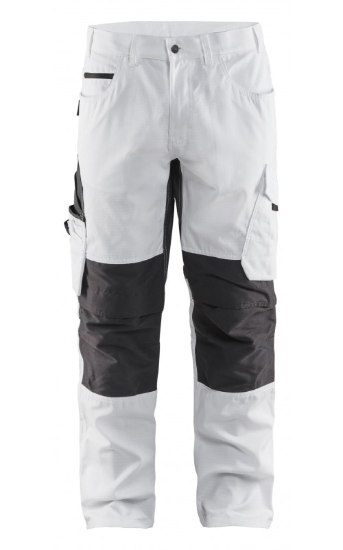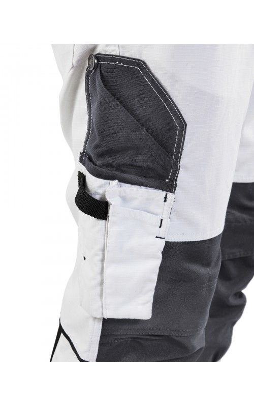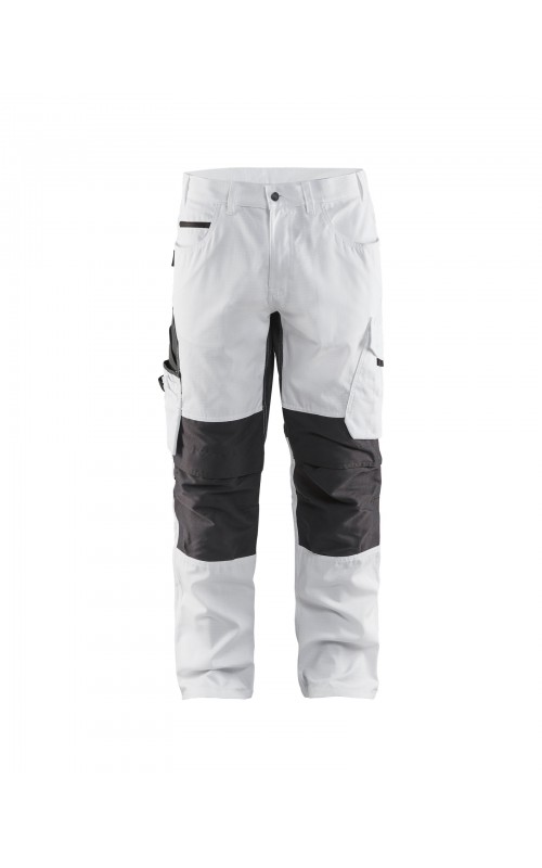 Stijlvol ontworpen werkbroek, extreem slijtvast maar toch lichtgewicht en flexibel. Het materiaal is een lichtgewicht rip-stop met goede scheur- en slijtweerstand. Het model heeft stretchpanelen in het kruis, op de knie en de kuit voor maximale flexibiliteit. De top-loading kniezakken van CORDURA®-stretchstof, met stretchmateriaal zowel aan de binnen- als de buitenkant, zorgen voor een meer ergonomische pasvorm. De broek heeft een CORDURA® versterkte zak voor het plamuurmes, een meszak, discrete reflecterende details en in de beenzak een telefoonzakje van mesh.