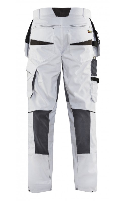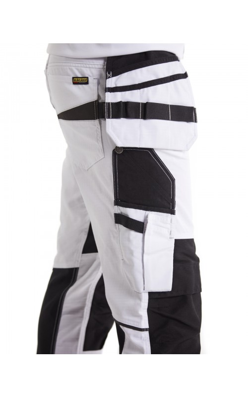 Stijlvol ontworpen werkbroek, extreem slijtvast maar toch lichtgewicht en flexibel. Het materiaal is een lichtgewicht rip-stop en heeft een goede scheur- en slijtweerstand. Het model heeft stretchpanelen in het kruis, op de knie en de kuit voor maximale flexibiliteit. De top-loading kniezakken van CORDURA®-stretchstof, met stretchmateriaal zowel aan de binnen- als de buitenkant, zorgen voor een meer ergonomische pasvorm. De broek heeft spijkerzakken, CORDURA®-versterkte plamuurmeszak en spijkerzakken, discrete reflecterende details en een interne mesh-telefoonzak.