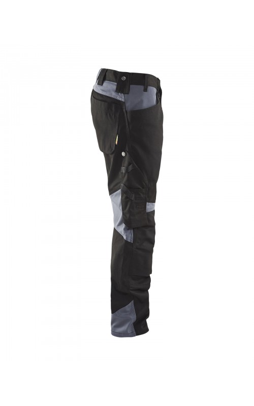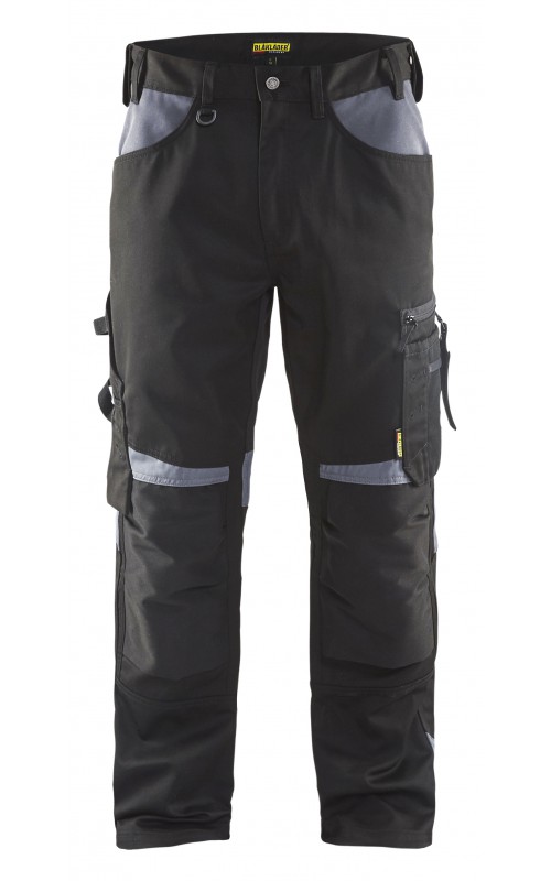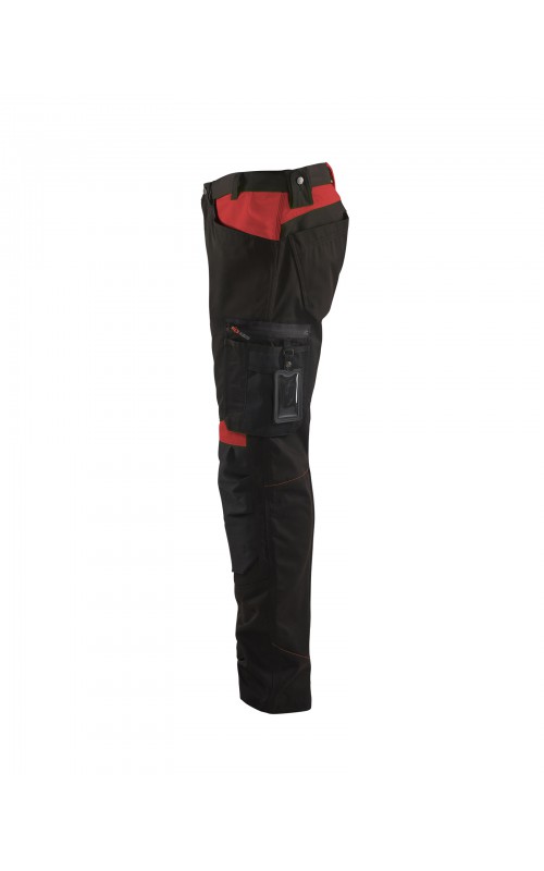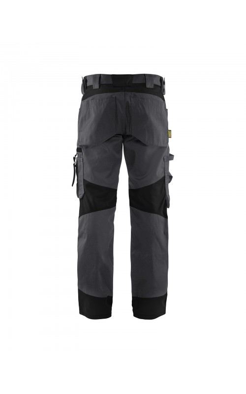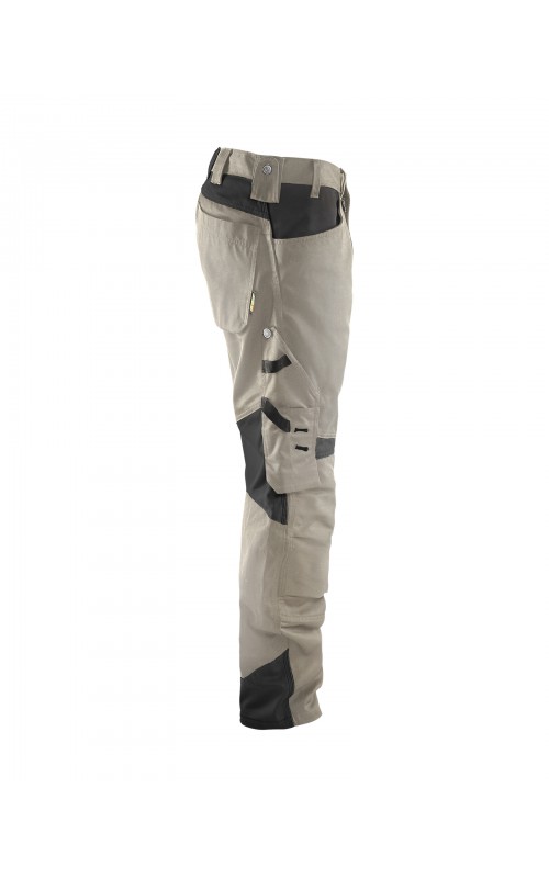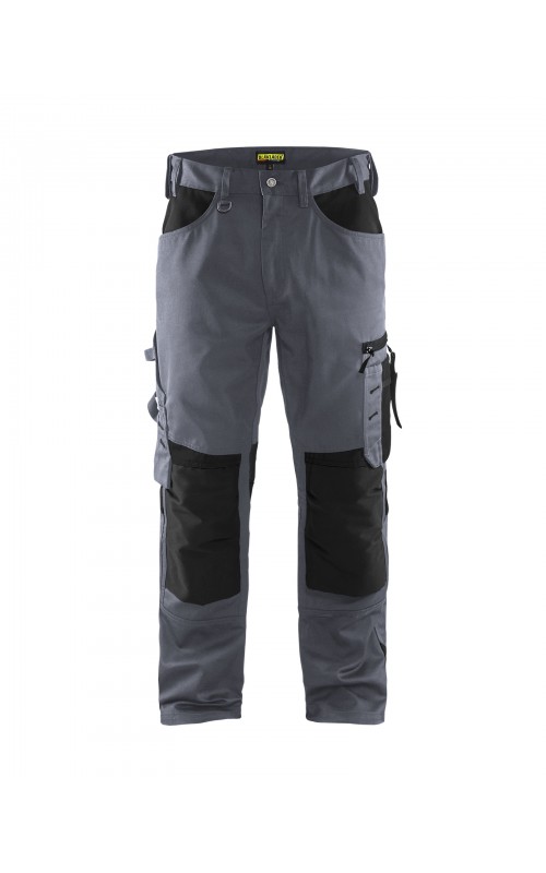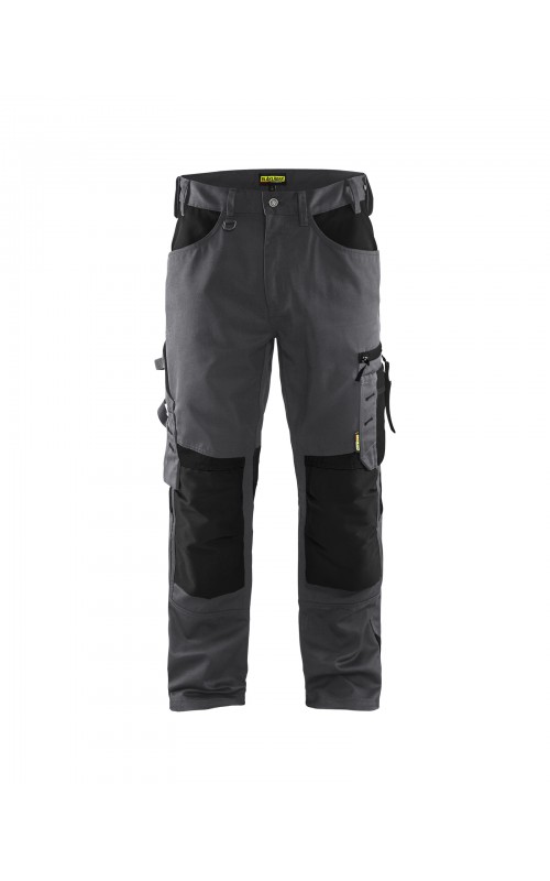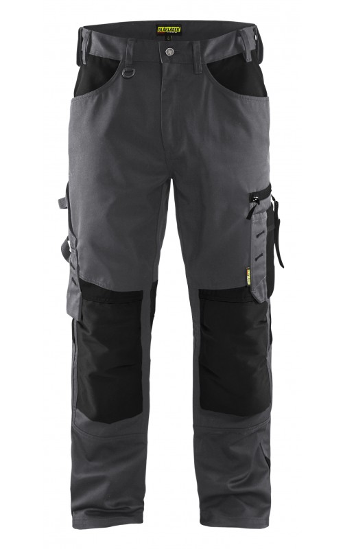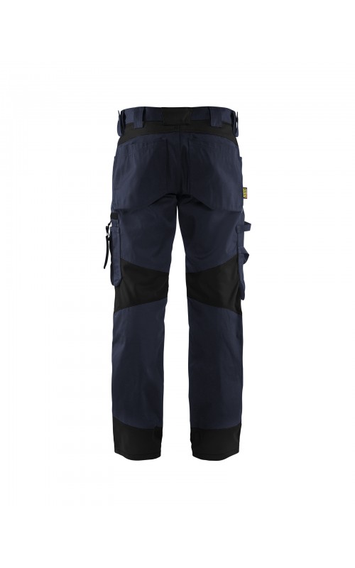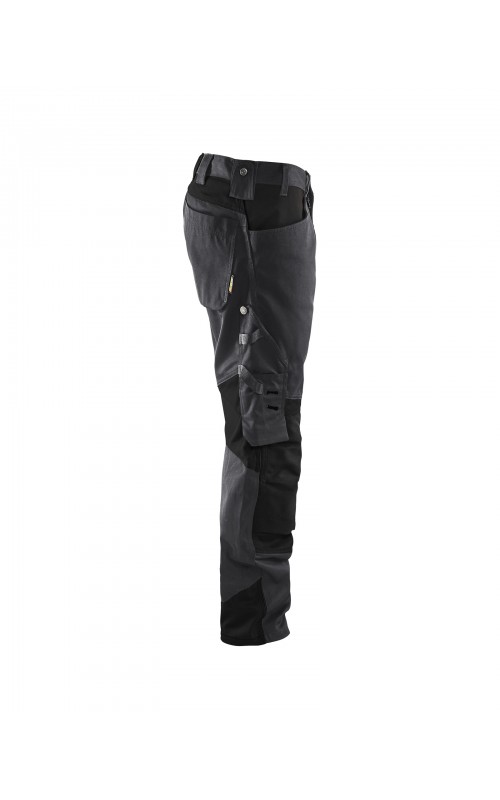 Functionele en comfortabele werkbroek met eenvoudig te bereiken zakken, zoals een telefoonzak in stretchmateriaal waar de meeste mobiele telefoons inpassen. Kniebeschermerszakken van CORDURA® stretch voor optimale pasvorm en duurzaamheid. Twee achterzakken met plooi en hamerlus, een versterkte duimstokzak, pennenzak en meshouder. Voorgevormde broekspijpen zorgen voor een uitstekende pasvorm.