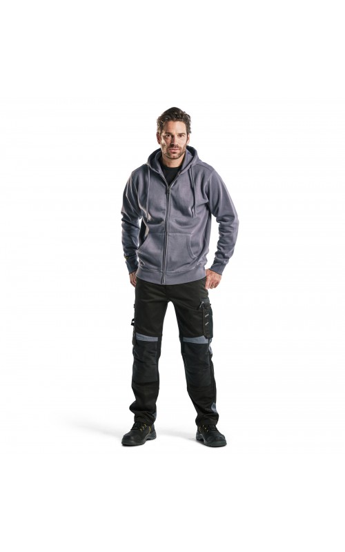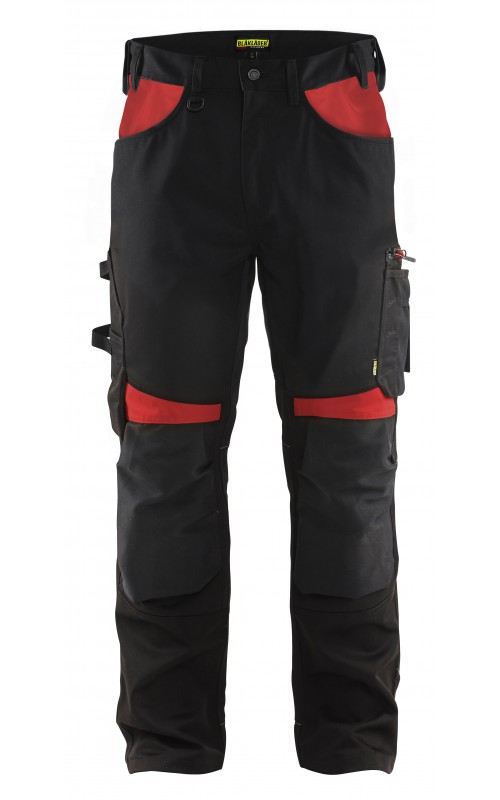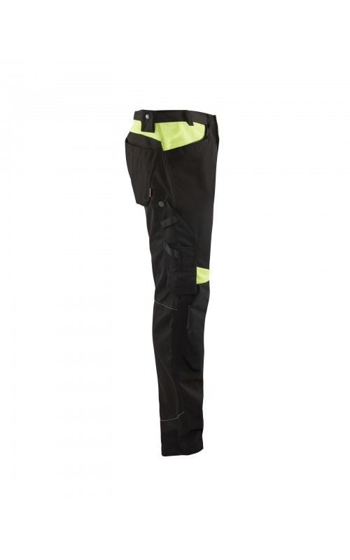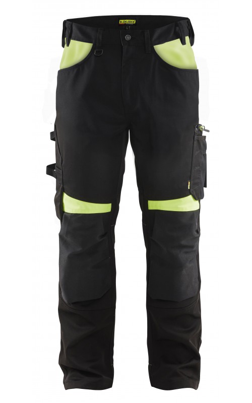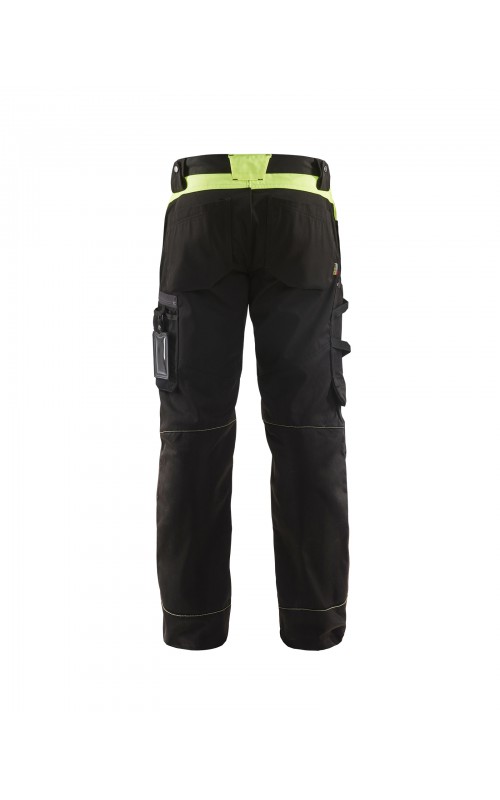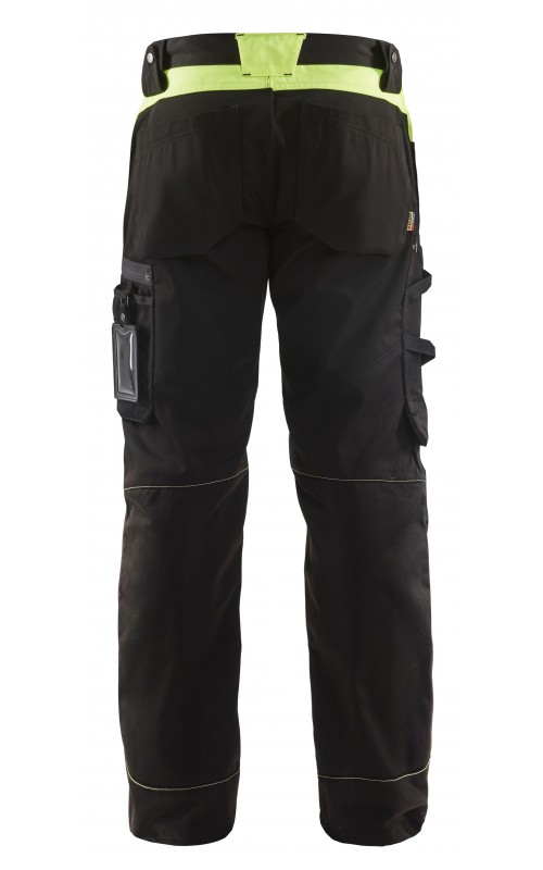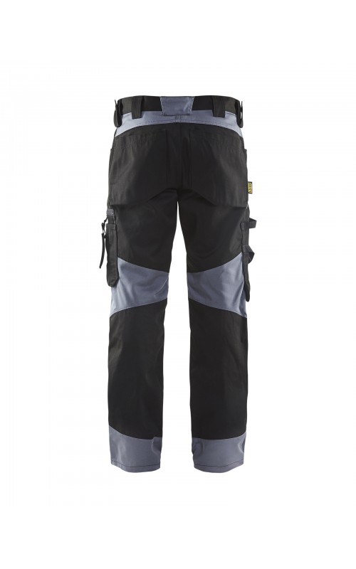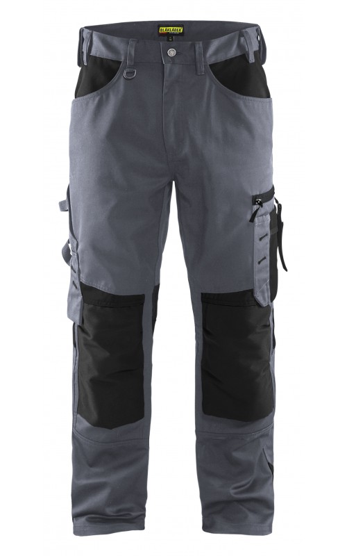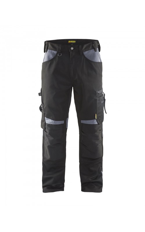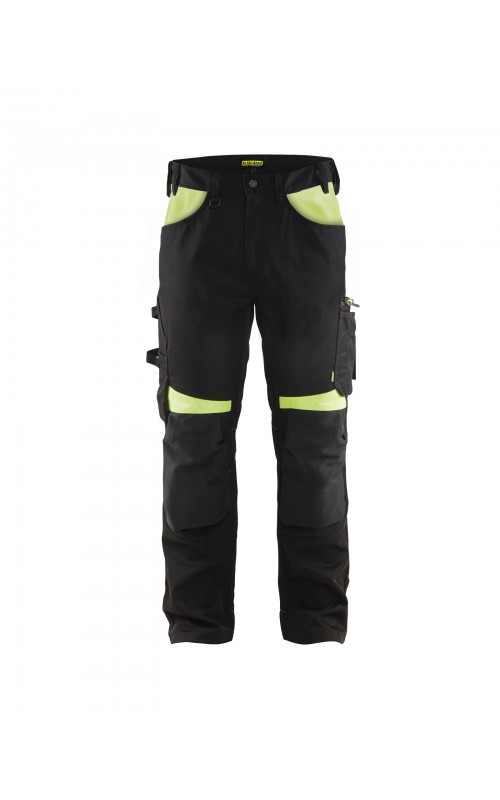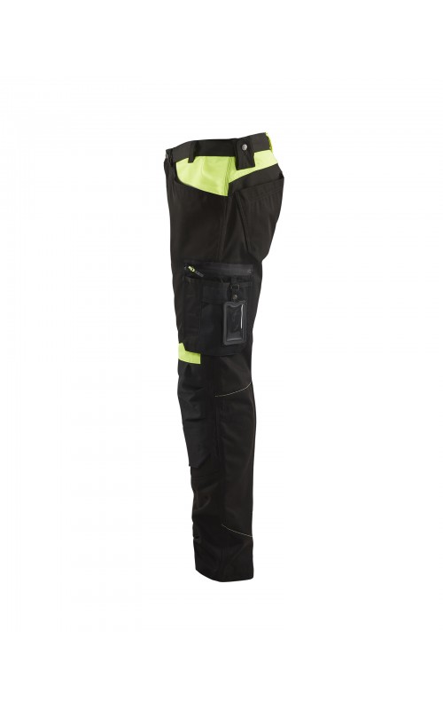 Functionele en comfortabele werkbroek met eenvoudig te bereiken zakken, zoals een telefoonzak in stretchmateriaal waar de meeste mobiele telefoons inpassen. Kniebeschermerszakken van CORDURA® stretch voor optimale pasvorm en duurzaamheid. Twee achterzakken met plooi en hamerlus, een versterkte duimstokzak, pennenzak en meshouder. Voorgevormde broekspijpen zorgen voor een uitstekende pasvorm.
