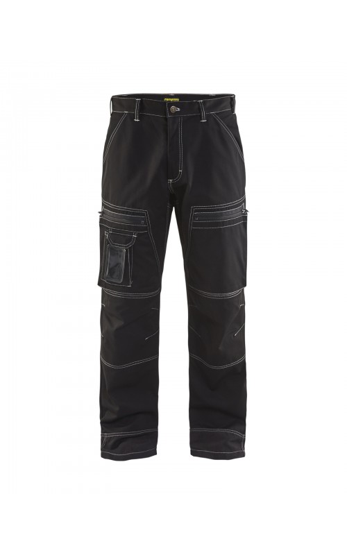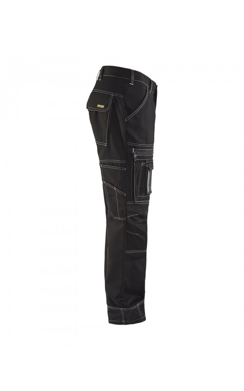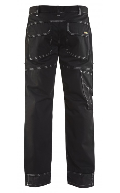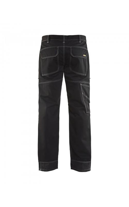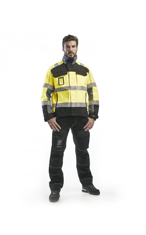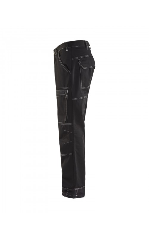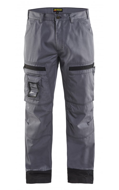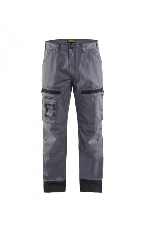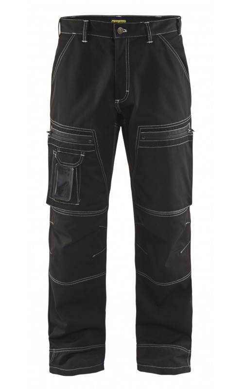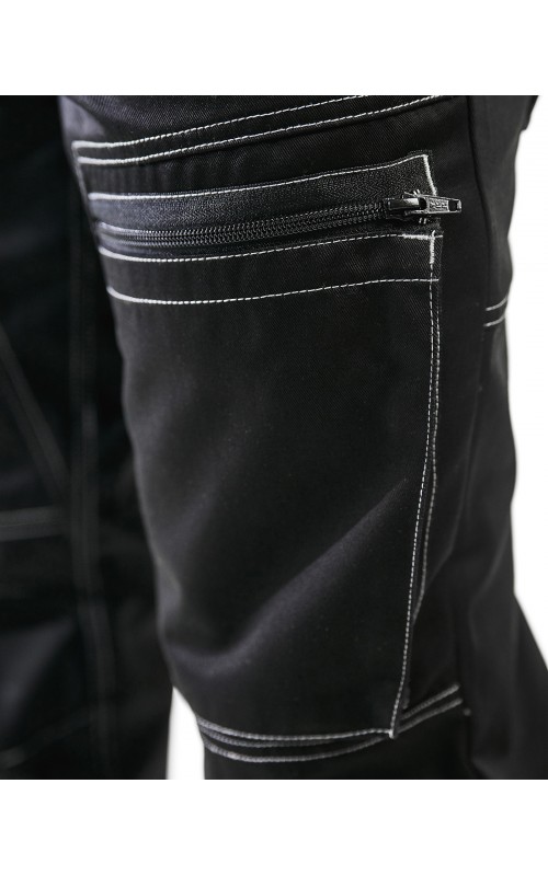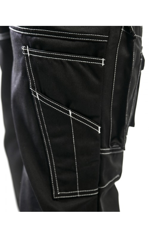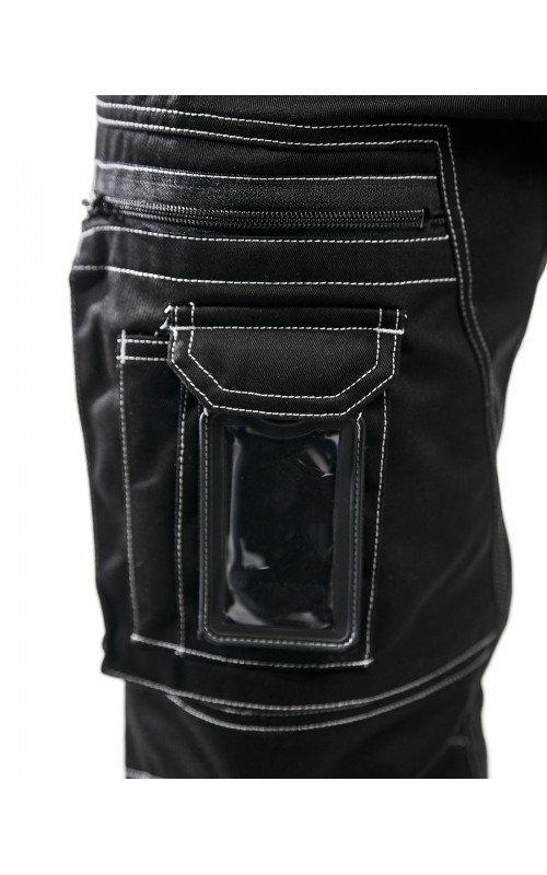 We have produced a pair of tailor-made trousers for professional drivers or those working in the service sector. After careful testing and requests from professionals, the result was a pair of trousers with functions including thigh pockets with fastener and a leg pocket with three compartments. Pre-bent knees and 20 mm reflective trim on the inside of the leg ends.
