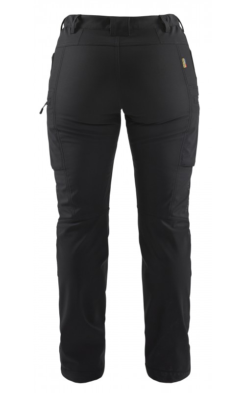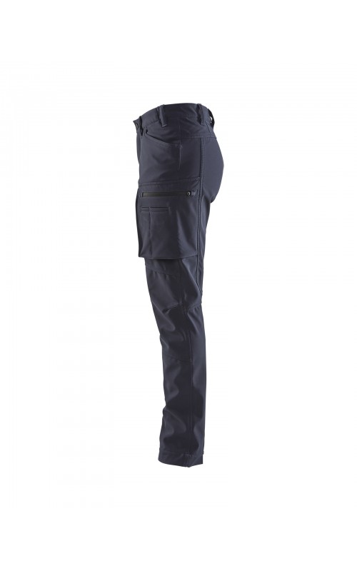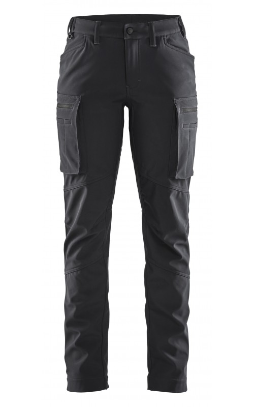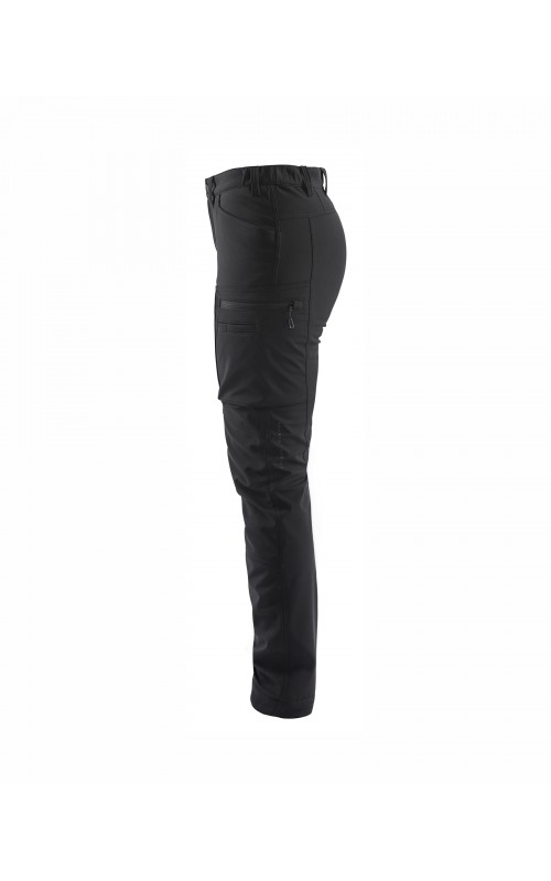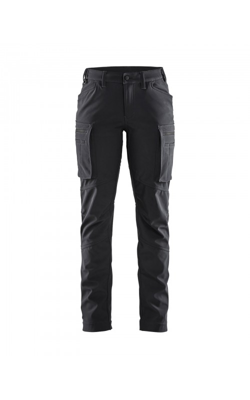 Service broek met damespasvorm, ontworpen om te dragen in de herfst en winter, geheel in stretch softshell-stof. Niet alleen zijn deze broeken zacht, lichtgewicht en zeer ademend, ze zijn ook warm genoeg om in gekoelde ruimtes te werken en zijn populair bij chauffeurs die de hele dag door in en uit hun voertuigen stappen.