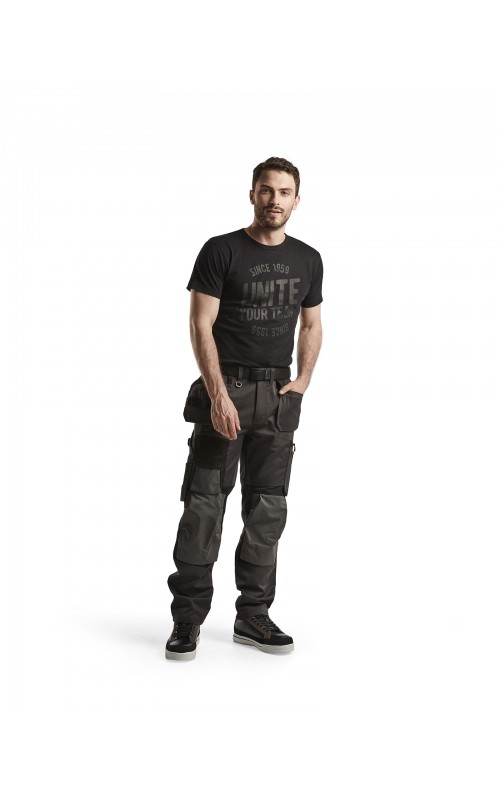 Slijtvaste werkbroek met nauwkeurig ontworpen details die voldoen aan alle professionele eisen als bewegingsvrijheid, functie en comfort. Het materiaal is sterk en in combinatie met elastische panelen is de broek ideaal voor bijvoorbeeld vloerleggers die veel in geknielde houding werken. Voorzien van Stretchmateriaal in het juk, boven kniezakken en in knieholte voor meer bewegingsvrijheid. Een aantal goed geplaatste functionele zakken zoals een meshouder met Kevlar®-versteviging, klep en stretch-paneel en eenvoudig bereikbare flex-telefoonzak van stretchmateriaal waar de meeste mobiele telefoons inpassen.