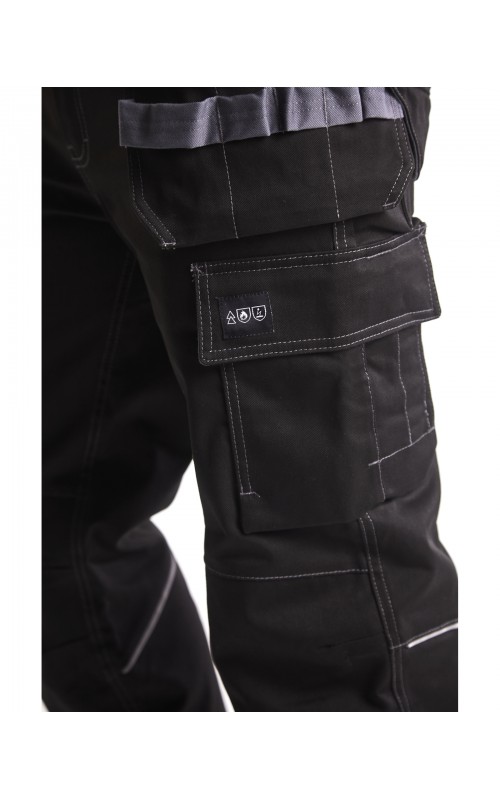 Comfortabele en slijtvaste vlamvertragende werkbroek met goede pasvorm. De broek heeft functionele details zoals voorgevormde broekspijpen, reflecterende details aan de onderkant en ruime opbergzakken met veel functies. Interne kniezakken op twee niveaus verhogen het comfort bij het werken op uw knieën. Gecertificeerd volgens EN 1149-5, EN ISO 11612 A1, B1, C1, F1 en IEC 61482-2, Klasse 1. ATPV: 16,0 cal/cm², HAF: 82,0%.