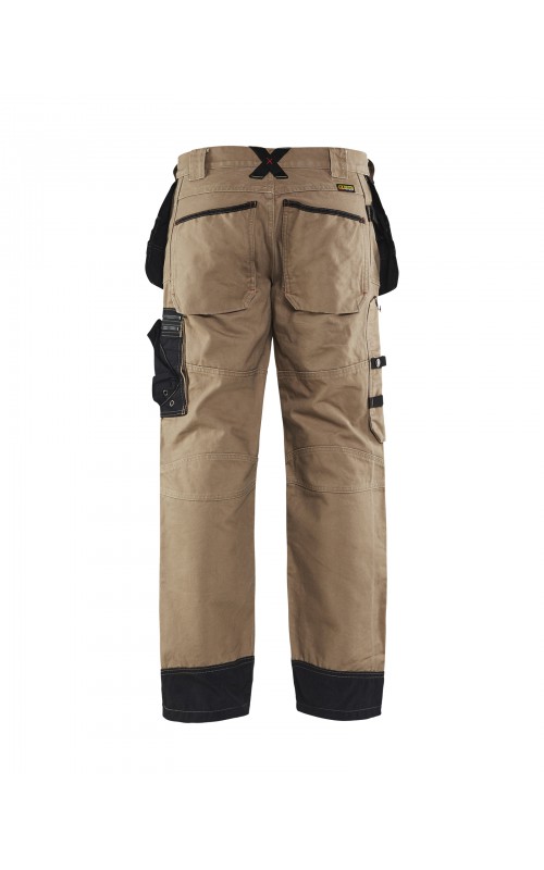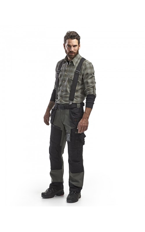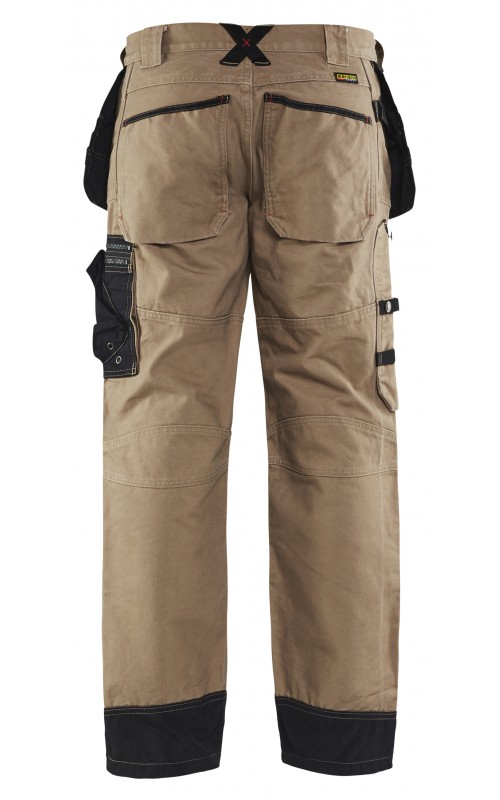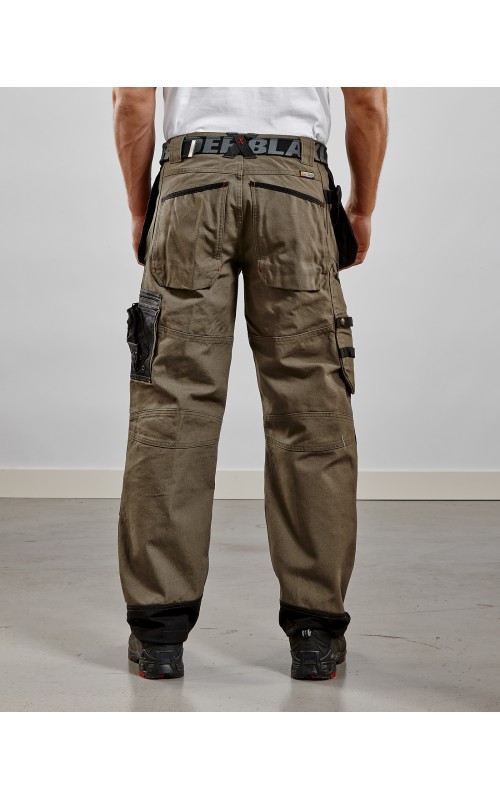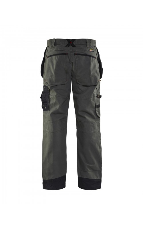 Draag deze broek thuis, in het bos of op de bouwplaats. Deze stoere canvas versie van de X1500 is verkrijgbaar in groen, staalblauw, zwart en khaki - allemaal voorzien van 1500 details. Zoals op al onze werkkleding, met levenslange garantie op de stiknaden.