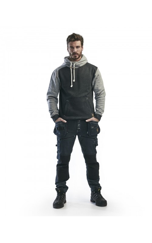 Stijlvolle hoodie met een klassieke fit. De trui heeft een vaste, getwiste capuchon met koord en een ruime kangoeroezak met een binnenzak met rits voor mobiele telefoon of bankkaart. Met de lus in de nek kan de trui eenvoudig worden opgehangen.