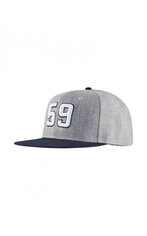 Stijlvolle cap met platte rand en snapback gemaakt van acryl en wol. De cap is voorzien van een tekst "59".