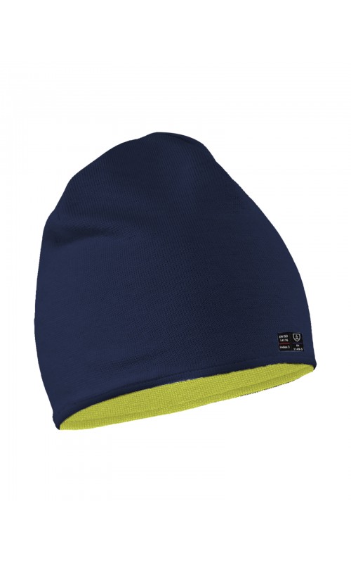 Vlamvertragende omkeerbare beanie met verhoogde zichtbaarheid. Gecertificeerd volgens EN ISO 14116 index 3 en EN 1149-5 antistatisch.