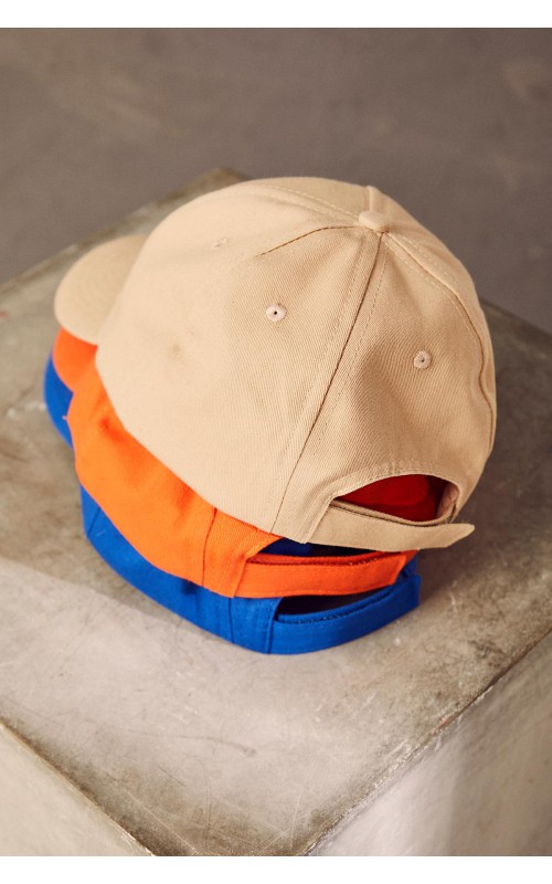 Cap in cotton twill with adjustable closure. No seams on front.