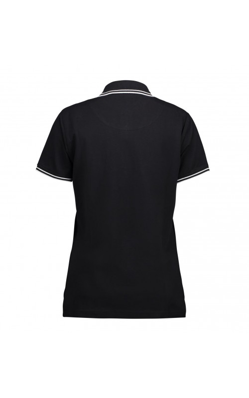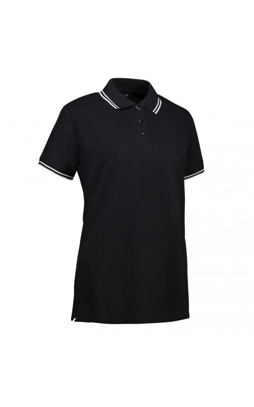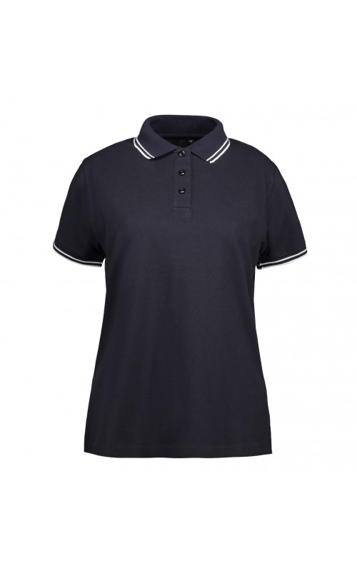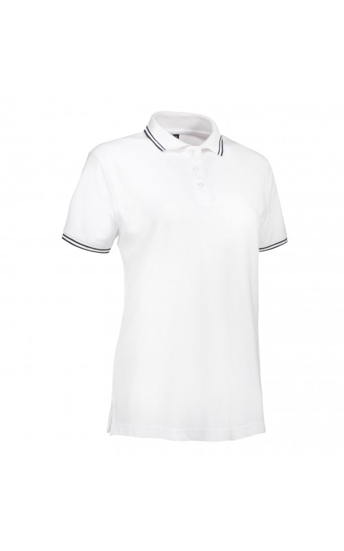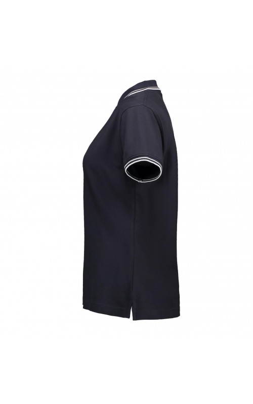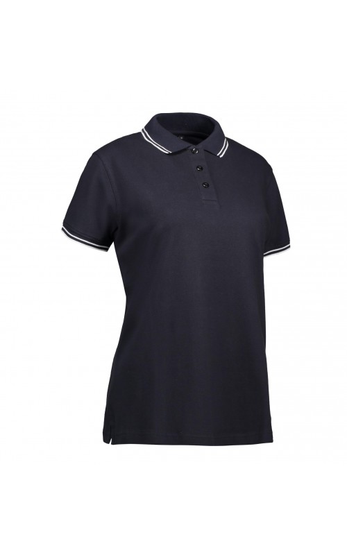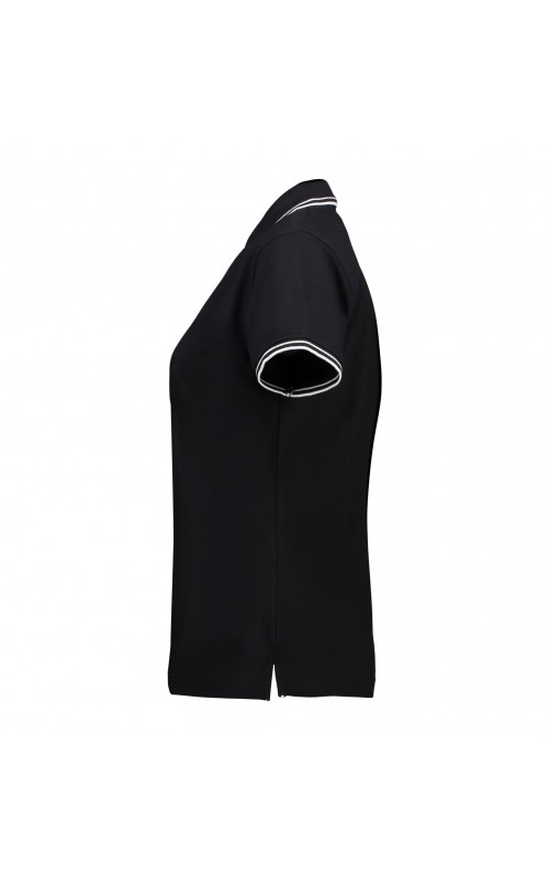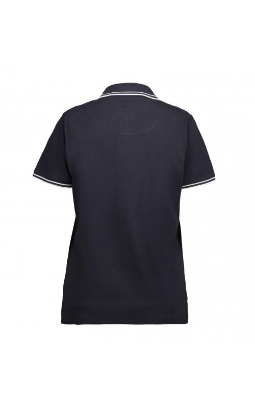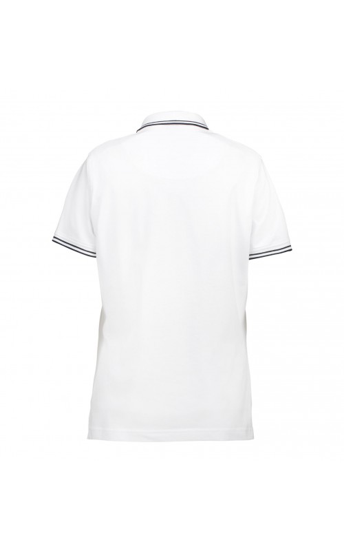 Classic polo shirt in piqué quality with stretch. Neck band, half-moon at neck and placket with tone-in-tone buttons. Contrasting stripe on sleeves and collar. Slightly shaped.