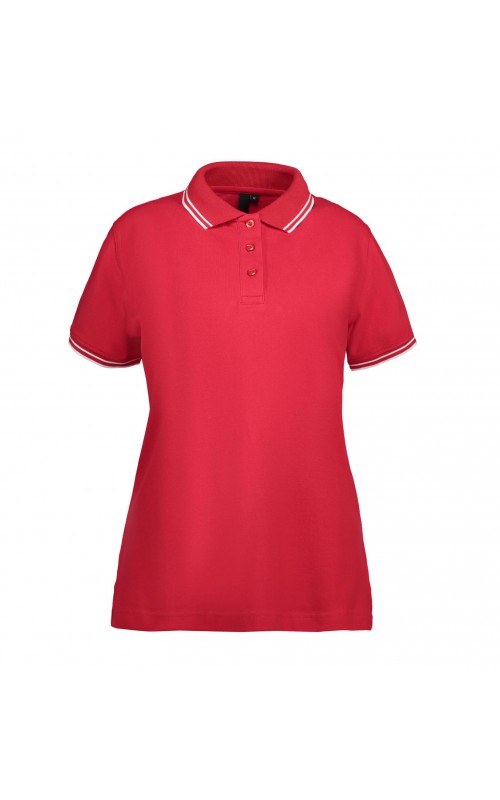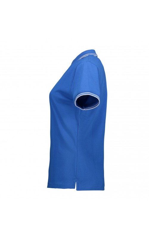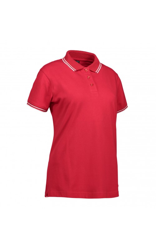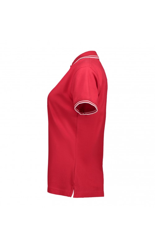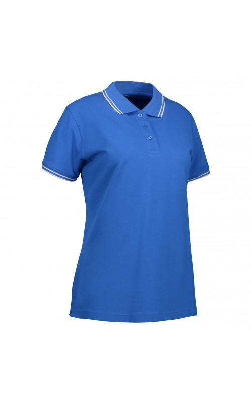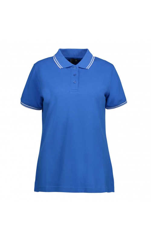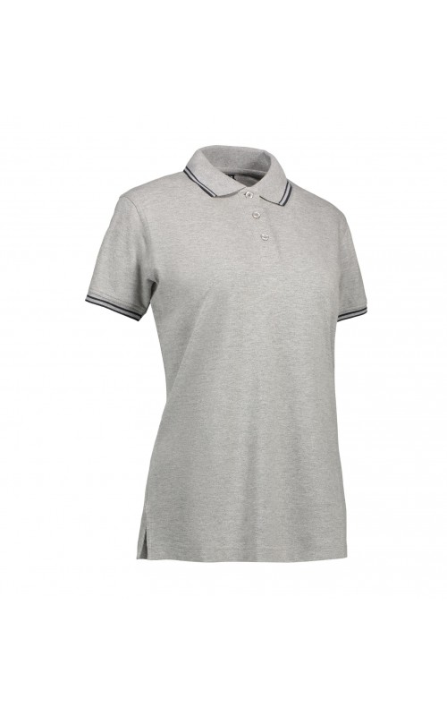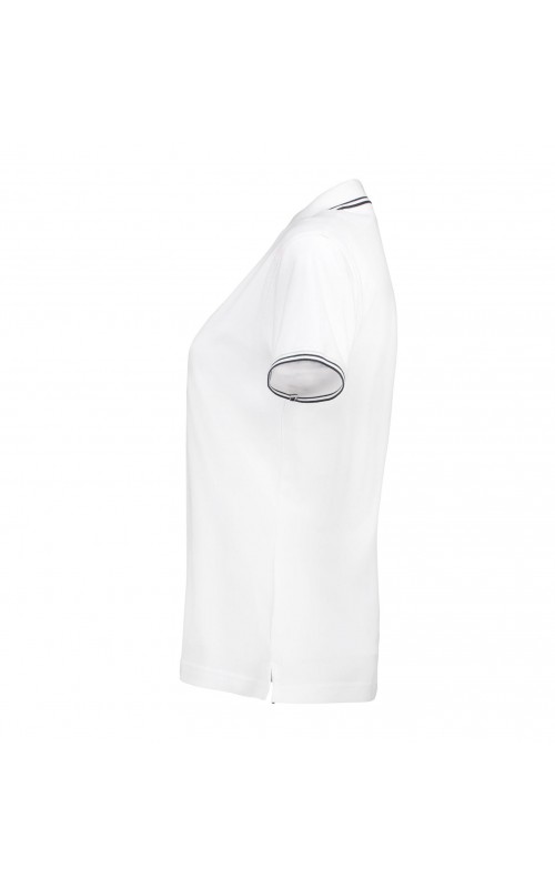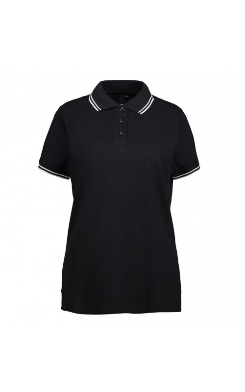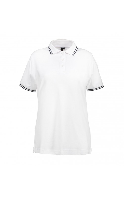 Classic polo shirt in piqué quality with stretch. Neck band, half-moon at neck and placket with tone-in-tone buttons. Contrasting stripe on sleeves and collar. Slightly shaped.