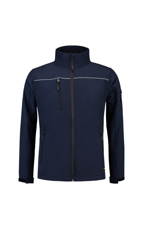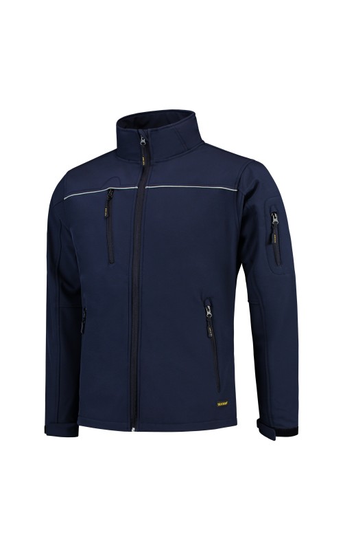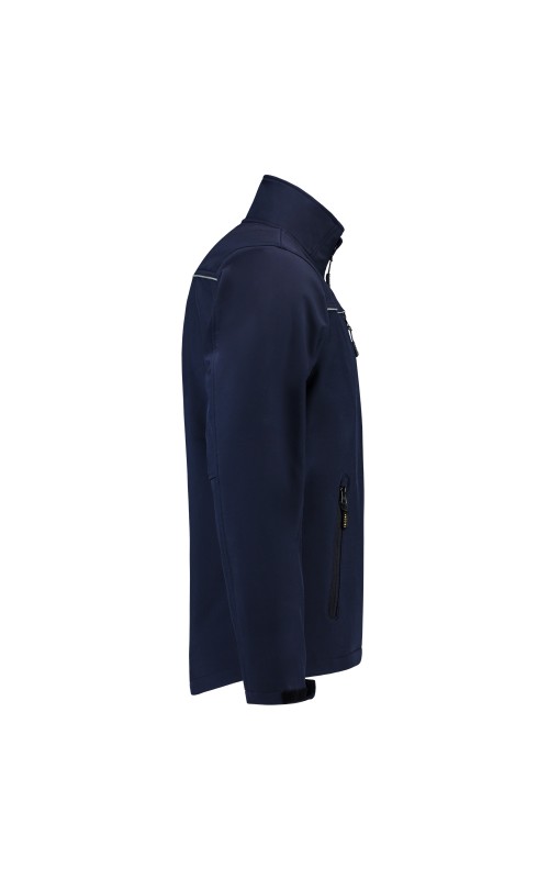 Een softshell is een soepele, comfortabele jas die ook waterafstotend en winddicht is. Het materiaal is gemaakt van een gewoven polyester. Het gebruik van een PU tussenlaag zorgt ervoor dat het ademend vermogen optimaal blijft en je dus niet gaat zweten. De rekbare stof zorgt ervoor dat je je bewegingsvrijheid behoudt. De softshell bevat stretch voor extra draagcomfort. Tevens is de jas beter zichtbaar door de reflectiepiping op de borst. Dit kledingstuk is voorzien van een gelamineerde rits voor een luxe uitstraling. De onderzijde van de jas is middels een elastisch koord met stoppers te verstellen en de manchetten zijn door middel van klittenband te verstellen. De Softshell is aan de voorzijde voorzien van 4 zakken en biedt daardoor veel opbergmogelijkheden. Ook heeft deze jas een binnenzak welke gebruikt kan worden voor het opbergen van de telefoon of MP3 speler. Om doorbloeden te voorkomen raden wij aan om alleen druktechnieken te gebruiken die geschikt zijn voor softshell stoffen.