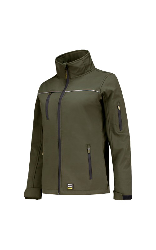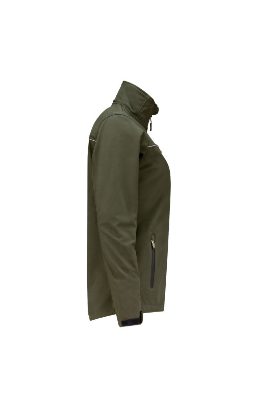 Een softshell is een soepele, comfortabele jas die ook waterafstotend en winddicht is. Het materiaal is gemaakt van een gewoven polyester. Het gebruik van een PU tussenlaag zorgt ervoor dat het ademend vermogen optimaal blijft en je dus niet gaat zweten. De rekbare stof zorgt ervoor dat je je bewegingsvrijheid behoudt. De softshell bevat stretch voor extra draagcomfort. Tevens is de jas beter zichtbaar door de reflectiepiping op de borst. Dit kledingstuk is voorzien van een gelamineerde rits voor een luxe uitstraling. De onderzijde van de jas is middels een elastisch koord met stoppers te verstellen en de manchetten zijn door middel van klittenband te verstellen. De Softshell is aan de voorzijde voorzien van 4 zakken en biedt daardoor veel opbergmogelijkheden. Ook heeft deze jas een binnenzak welke gebruikt kan worden voor het opbergen van de telefoon of MP3 speler. Om doorbloeden te voorkomen raden wij aan om alleen druktechnieken te gebruiken die geschikt zijn voor softshell stoffen.