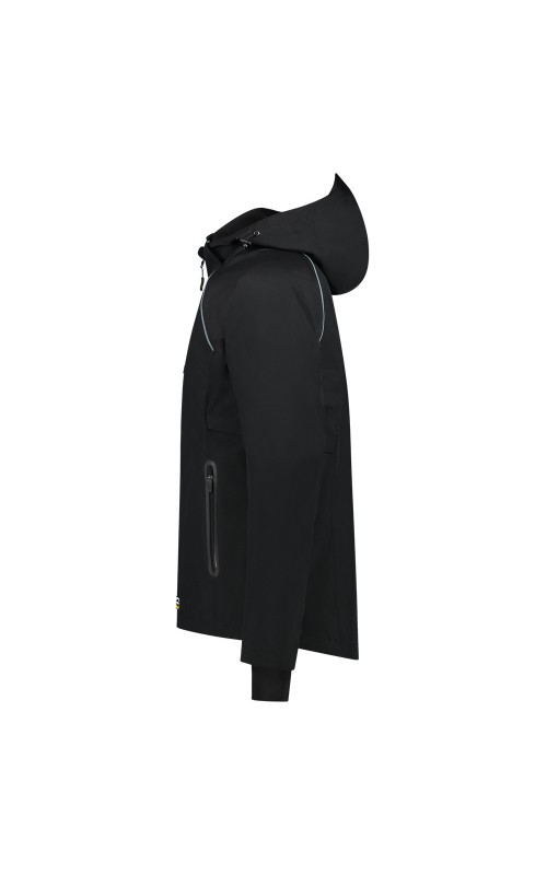 De Tricorp Tech Shell is een vernieuwend artikel met veel opties en mogelijkheden. Deze lichte werkjas is gemaakt uit 100% Polyester. Het product heeft een afritsbare capuchon en de reflective piping zorgt voor extra zichtbaarheid. Er is gebruik gemaakt van hoogwaardige materialen zoals een YKK ritssluiting en een tricot manchet met duimopening. Onder de armen zit een pit zip met luchtgaten voor een hoger ademend vermogen. De ritssluitingen in de armen (pit zip) vergroten het ademend vermogen van de jas. De jas heeft getapete naden en is wind- en waterdicht. Door het koord aan de onderzijde is de jas naar wens te verstellen. De Techshell is EN 343 klasse 3 / 4 gecertificeerd. EN 343 is de norm die eisen, specificaties en testmethoden bepaalt voor beschermende kleding tegen regen en slecht weer, zoals mist en sneeuw. Voor de eigenschappen waterdichtheid en waterdampdoorlaatbaarheid is sinds 2019 een klasse toegevoegd. Dit betekent dat de norm nu 4 klassen heeft in plaats van 3. Het ademend vermogen valt in de hoogste klasse 4. Verkrijgbaar in de vijf stoere kleuren army, ink, navy, black en darkgrey.