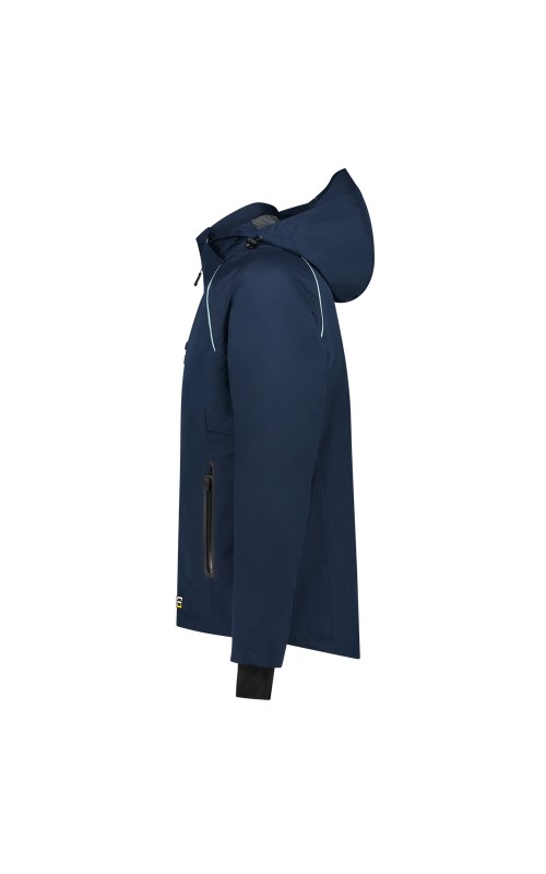 De Tricorp Tech Shell is een vernieuwend artikel met veel opties en mogelijkheden. Deze lichte werkjas is gemaakt uit 100% Polyester. Het product heeft een afritsbare capuchon en de reflective piping zorgt voor extra zichtbaarheid. Er is gebruik gemaakt van hoogwaardige materialen zoals een YKK ritssluiting en een tricot manchet met duimopening. Onder de armen zit een pit zip met luchtgaten voor een hoger ademend vermogen. De ritssluitingen in de armen (pit zip) vergroten het ademend vermogen van de jas. De jas heeft getapete naden en is wind- en waterdicht. Door het koord aan de onderzijde is de jas naar wens te verstellen. De Techshell is EN 343 klasse 3 / 4 gecertificeerd. EN 343 is de norm die eisen, specificaties en testmethoden bepaalt voor beschermende kleding tegen regen en slecht weer, zoals mist en sneeuw. Voor de eigenschappen waterdichtheid en waterdampdoorlaatbaarheid is sinds 2019 een klasse toegevoegd. Dit betekent dat de norm nu 4 klassen heeft in plaats van 3. Het ademend vermogen valt in de hoogste klasse 4. Verkrijgbaar in de vijf stoere kleuren army, ink, navy, black en darkgrey.