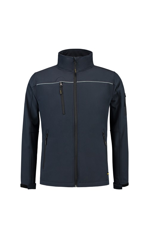 Een softshell is een soepele, comfortabele jas die ook waterafstotend en winddicht is. Het materiaal is gemaakt van een gewoven polyester. Het gebruik van een PU tussenlaag zorgt ervoor dat het ademend vermogen optimaal blijft en je dus niet gaat zweten. De rekbare stof zorgt ervoor dat je je bewegingsvrijheid behoudt. De softshell bevat stretch voor extra draagcomfort. Tevens is de jas beter zichtbaar door de reflectiepiping op de borst. Dit kledingstuk is voorzien van een gelamineerde rits voor een luxe uitstraling. De onderzijde van de jas is middels een elastisch koord met stoppers te verstellen en de manchetten zijn door middel van klittenband te verstellen. De Softshell is aan de voorzijde voorzien van 4 zakken en biedt daardoor veel opbergmogelijkheden. Ook heeft deze jas een binnenzak welke gebruikt kan worden voor het opbergen van de telefoon of MP3 speler. Om doorbloeden te voorkomen raden wij aan om alleen druktechnieken te gebruiken die geschikt zijn voor softshell stoffen.