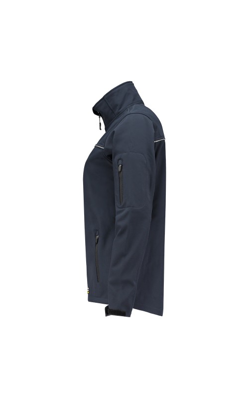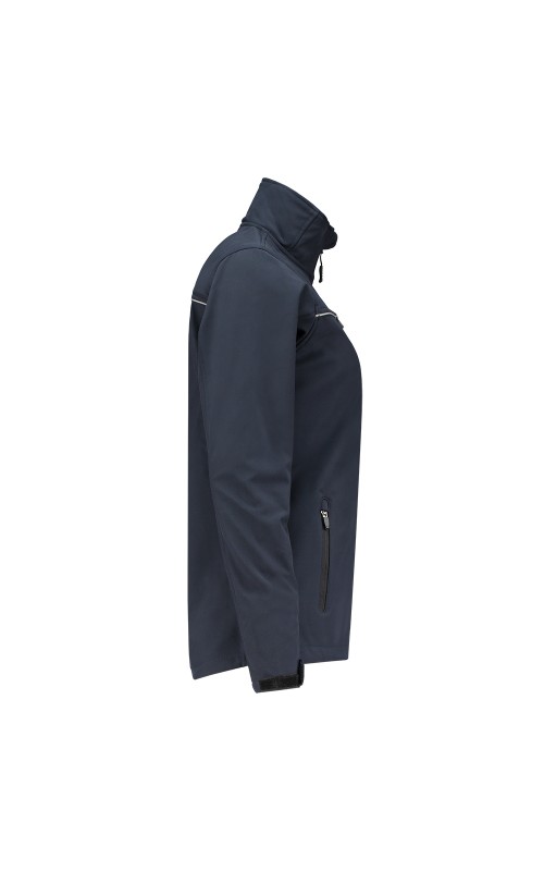 Een softshell is een soepele, comfortabele jas die ook waterafstotend en winddicht is. Het materiaal is gemaakt van een gewoven polyester. Het gebruik van een PU tussenlaag zorgt ervoor dat het ademend vermogen optimaal blijft en je dus niet gaat zweten. De rekbare stof zorgt ervoor dat je je bewegingsvrijheid behoudt. De softshell bevat stretch voor extra draagcomfort. Tevens is de jas beter zichtbaar door de reflectiepiping op de borst. Dit kledingstuk is voorzien van een gelamineerde rits voor een luxe uitstraling. De onderzijde van de jas is middels een elastisch koord met stoppers te verstellen en de manchetten zijn door middel van klittenband te verstellen. De Softshell is aan de voorzijde voorzien van 4 zakken en biedt daardoor veel opbergmogelijkheden. Ook heeft deze jas een binnenzak welke gebruikt kan worden voor het opbergen van de telefoon of MP3 speler. Om doorbloeden te voorkomen raden wij aan om alleen druktechnieken te gebruiken die geschikt zijn voor softshell stoffen.