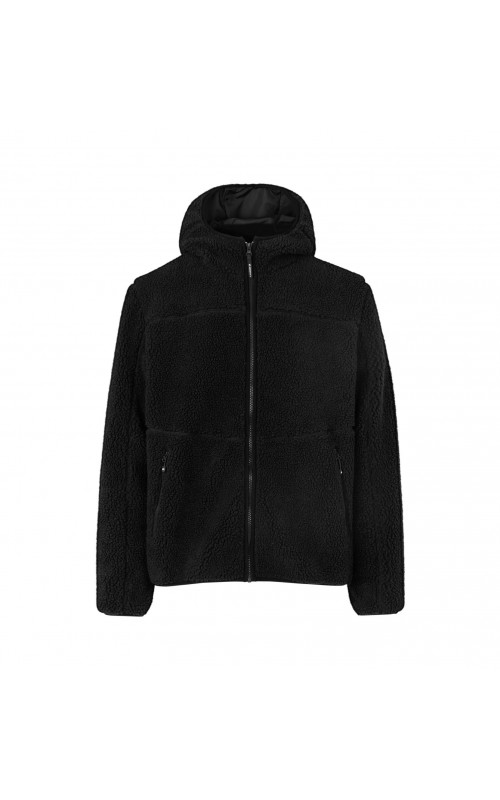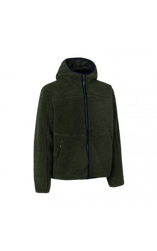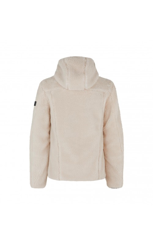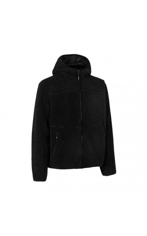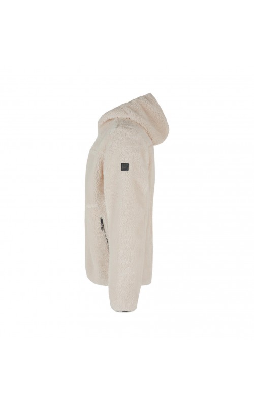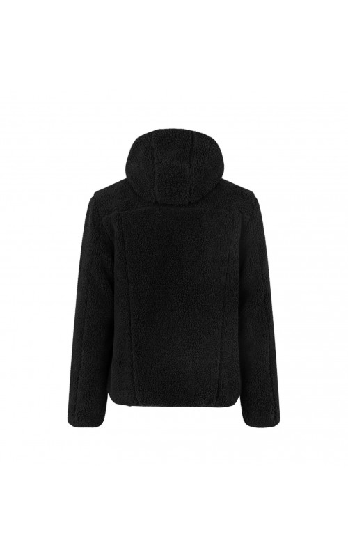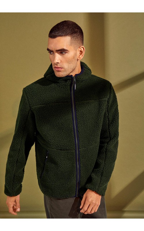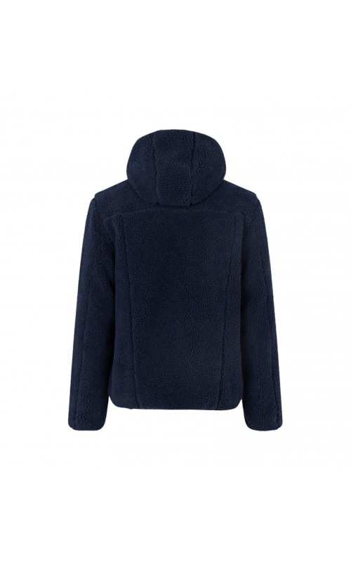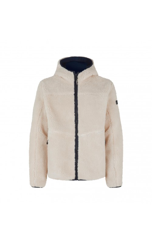 Soft teddy fleece jacket with hood and inside zip pockets. Particularly suitable as a transition jacket for autumn or spring. The jacket has a contrasting colour on the inside, as well as on the sleeves and zip, giving it a modern feel.