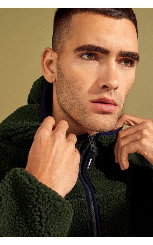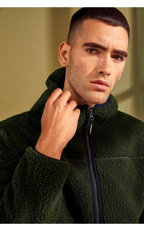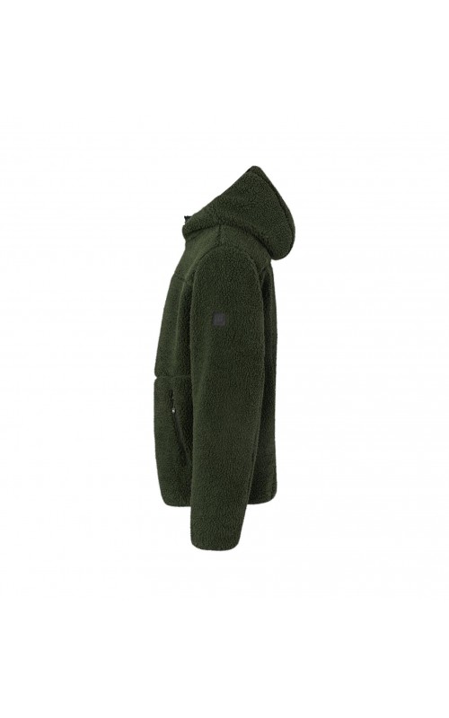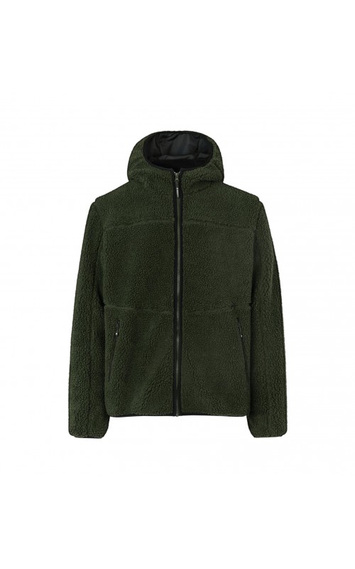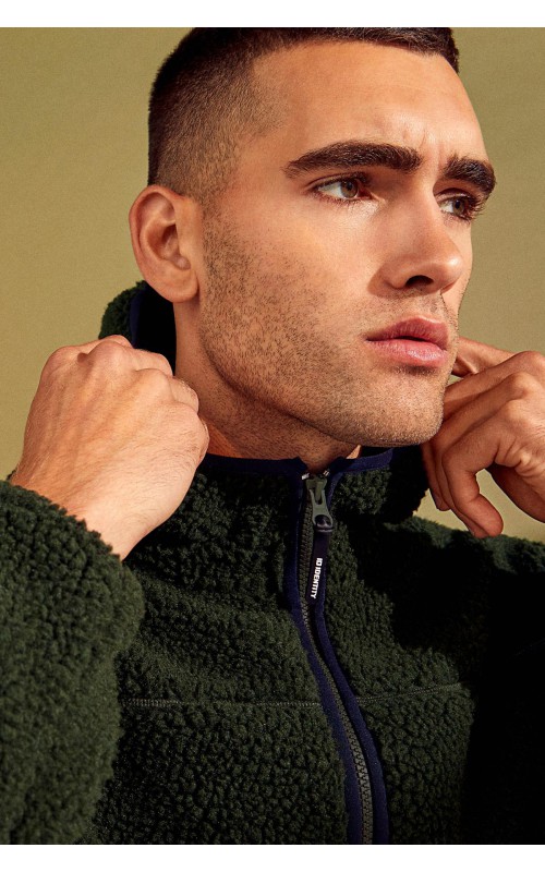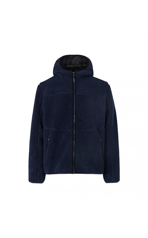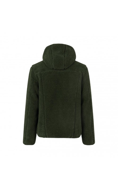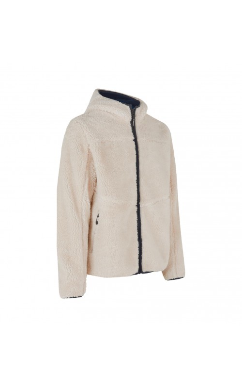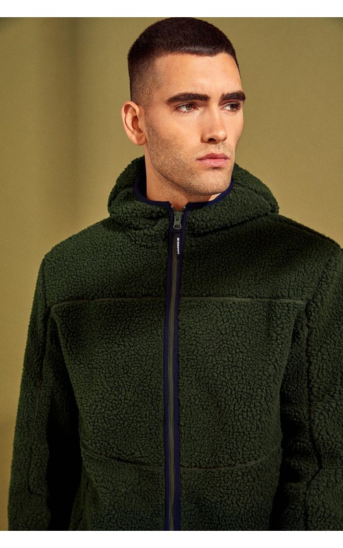 Soft teddy fleece jacket with hood and inside zip pockets. Particularly suitable as a transition jacket for autumn or spring. The jacket has a contrasting colour on the inside, as well as on the sleeves and zip, giving it a modern feel.