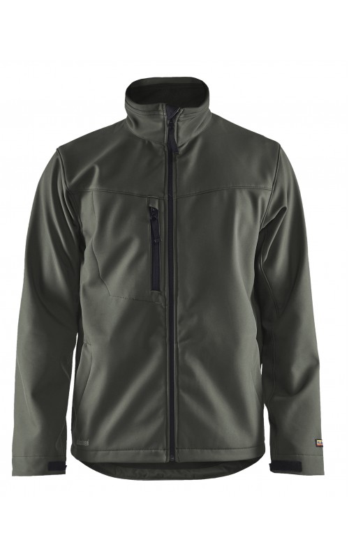 100% polyester, 3-laagse softshell, winddicht 17.000 mm, ademend vermogen, 300 g/m²