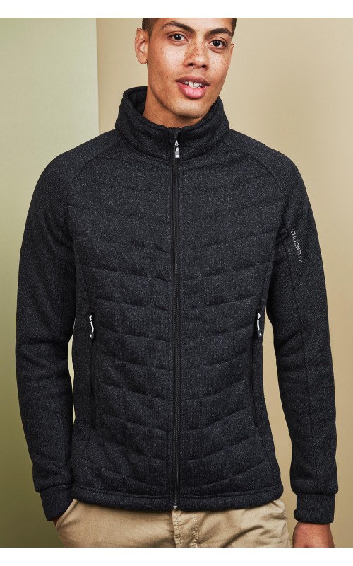 Exclusive quilted melange fleece jacket. The jacket is partially lined and has many appealing details. It has zipper side pockets and an inside side drawstring to keep wind and draughts out. Perfect for both indoor and outdoor use.