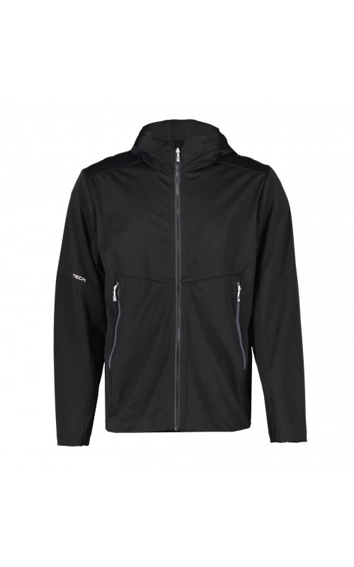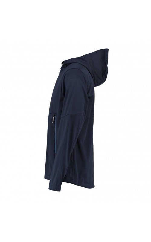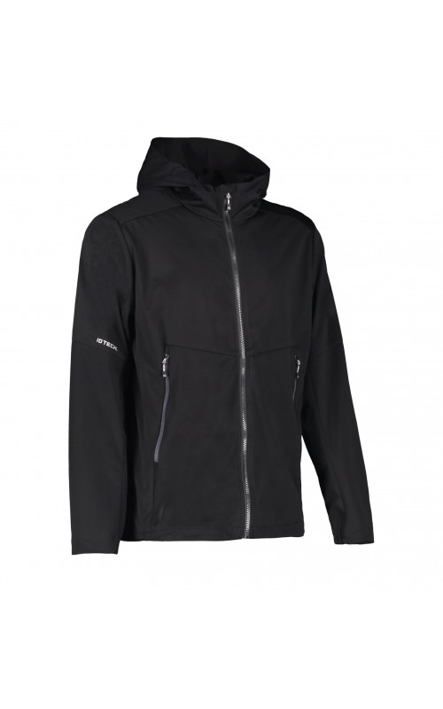 Lightweight soft shell jacket in the ID Tech® three-layer membrane quality with knitted surface, which is lightweight and stretchable. Small contrast zipper details and contrast details inside. The hood has concealed reinforcement in the shade. Two zippered side pockets, and sleeves with inside elastic cuffs. Inside drawstring at the side to keep out wind and draughts. Tight-fitting model with a slim modern fit.
