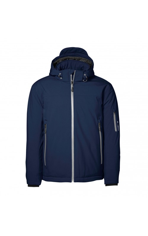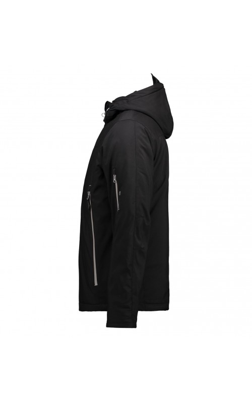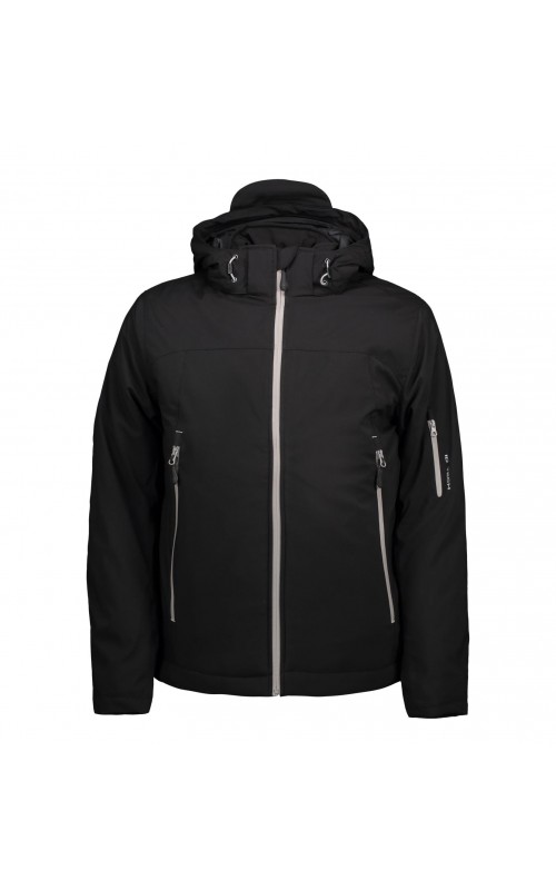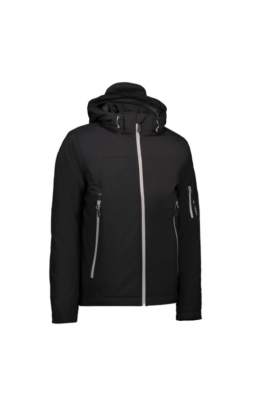 Functional winter soft shell jacket with water resistant zipper. Three-layer ID Tech® quality with warm and soft lining. Durable and ductile woven quality on the outside. Functional membrane with wind and water resistant qualities. Detachable hood.