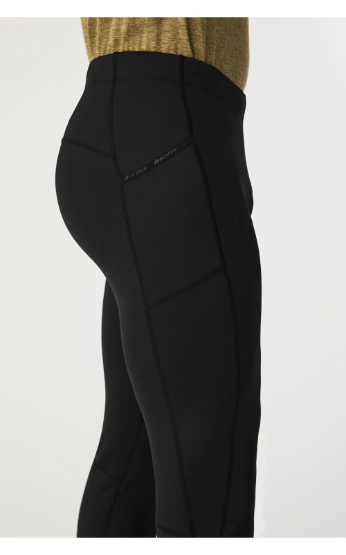 Long tights in soft functional interlock fabric with flatlock seams. The material provides increased stretchability and excellent freedom of movement. Soft, comfortable elasticated drawstring waistband. Side leg pockets. The leg length is designed a little shorter in the front and curved towards the back to ensure increased comfort and functionality. Visible reflector on lower leg.