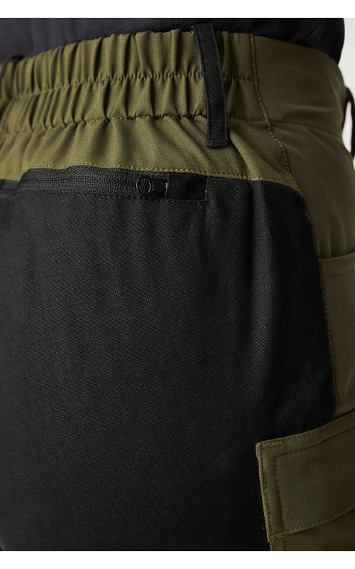 Comfortable, all-round trousers for casual or practical wear. Lightweight and stretchable with canvas reinforcements. The elasticated back waistband provides increased comfort. Also features belt loops and key/card strap. YKK zips on both the front and back pocket. Flexible elastic solution at the bottom of the trouser legs. Thigh pocket in stretch fabric. Regular fit with gusset and knee dart details for optimal comfort.