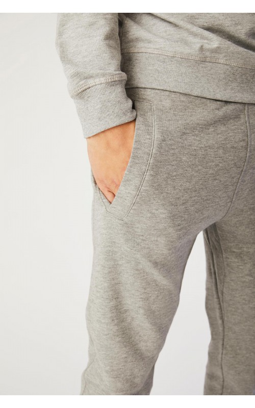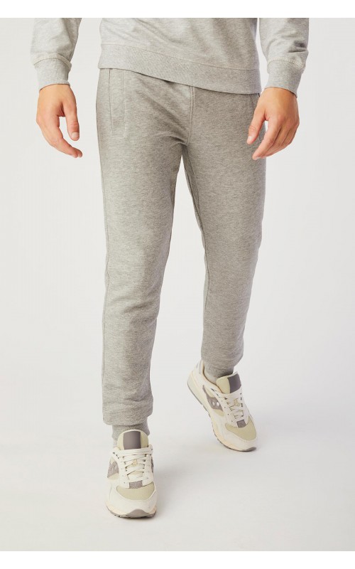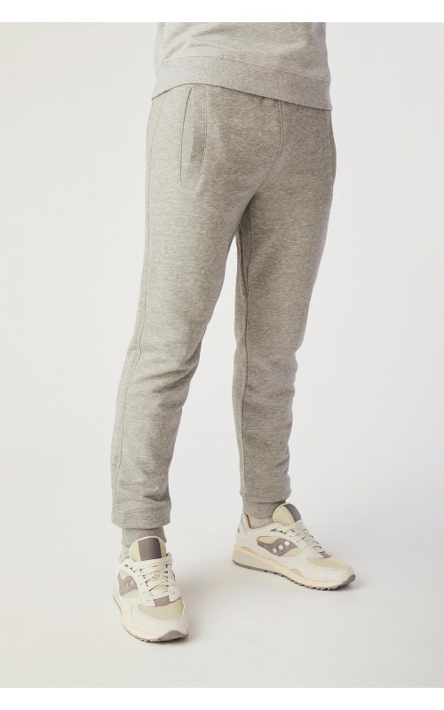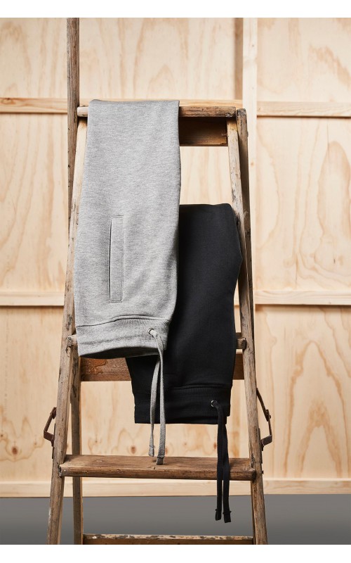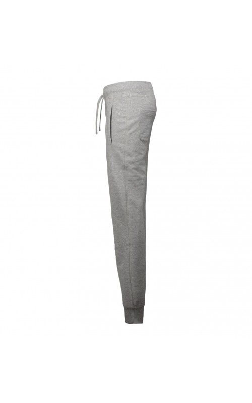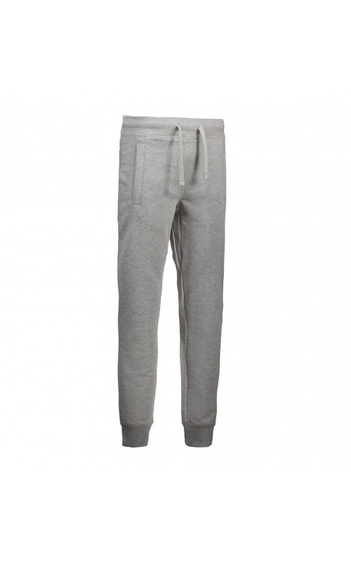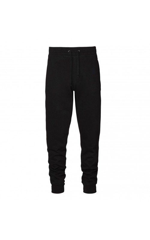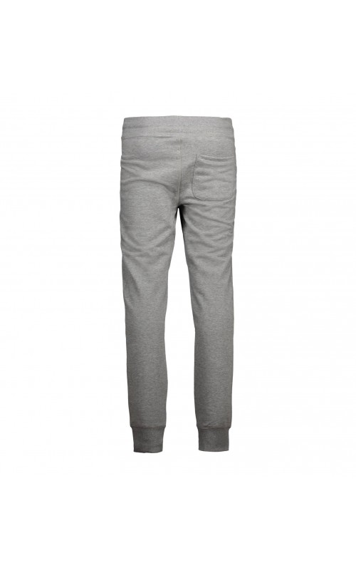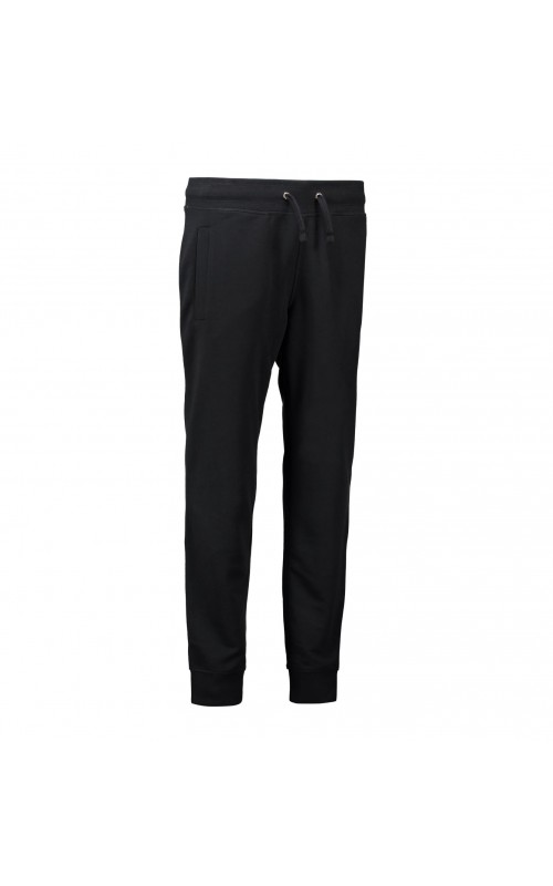 Sporty sweatpants with two-layer ribbing at waist and foot. Cord and two cross pockets. Unbrushed inner fabric.